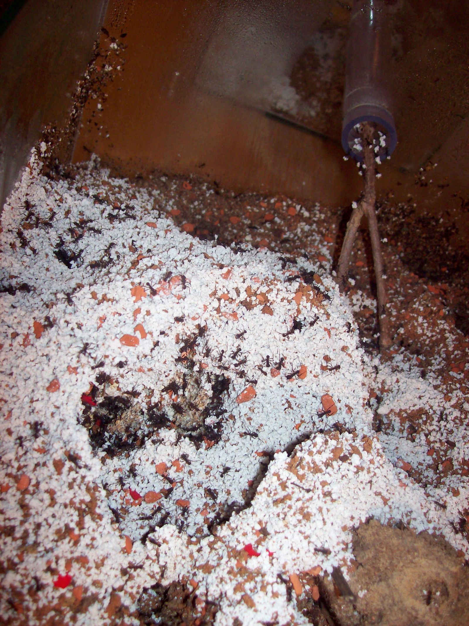 Der Kolonie geht es wieder gut! Zwischendurch hatte ich ein paar Probleme mit dem Pilz, ca. 2/3 des Pilzes wurde auf den MĂŒllhaufen geschmissen und ca. 500 Ameisen haben das Zeitliche gesegnet :( Diesen Vorgang konnte ich mir leider nicht erklĂ€ren ...