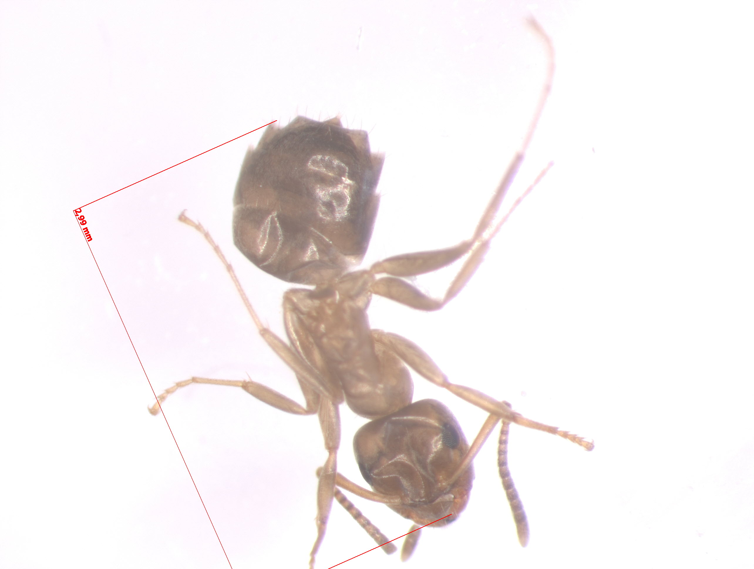 hier habe ich noch einige Bilder unter dem Mikroskop gemacht (Ameisen musste ich mit Tesa festkleben). Ich denke mit eurer Vermutung mit Lasius brunneus liegt ihr wohl richtig.