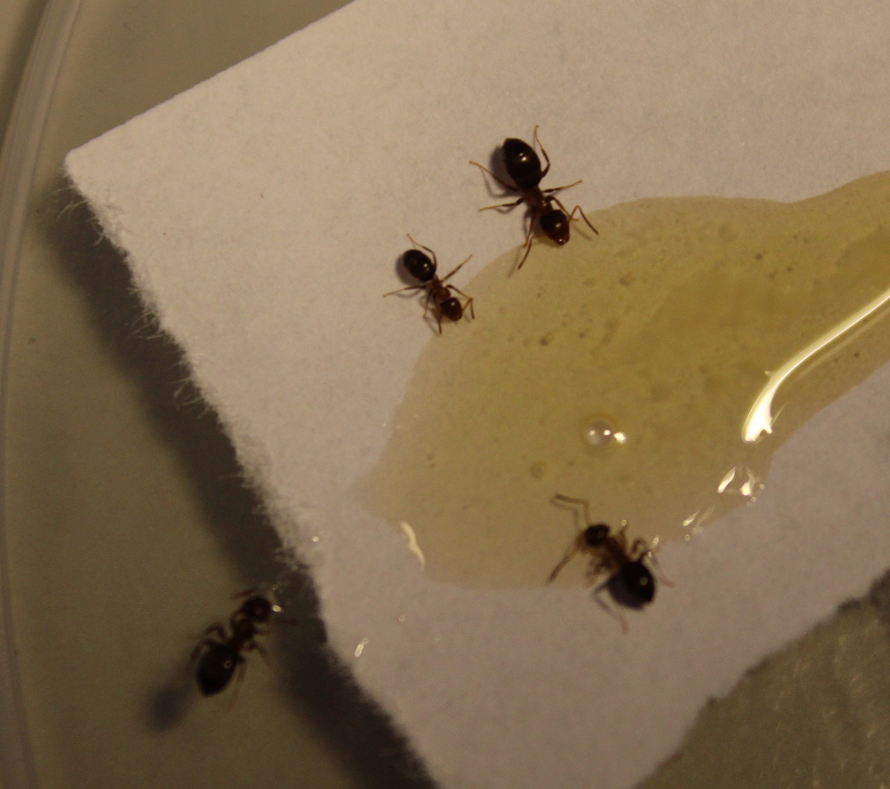 Fraßköder: L. brunneus nimmt gern Zuckersaft. Der muß also die Grundlage bilden.
