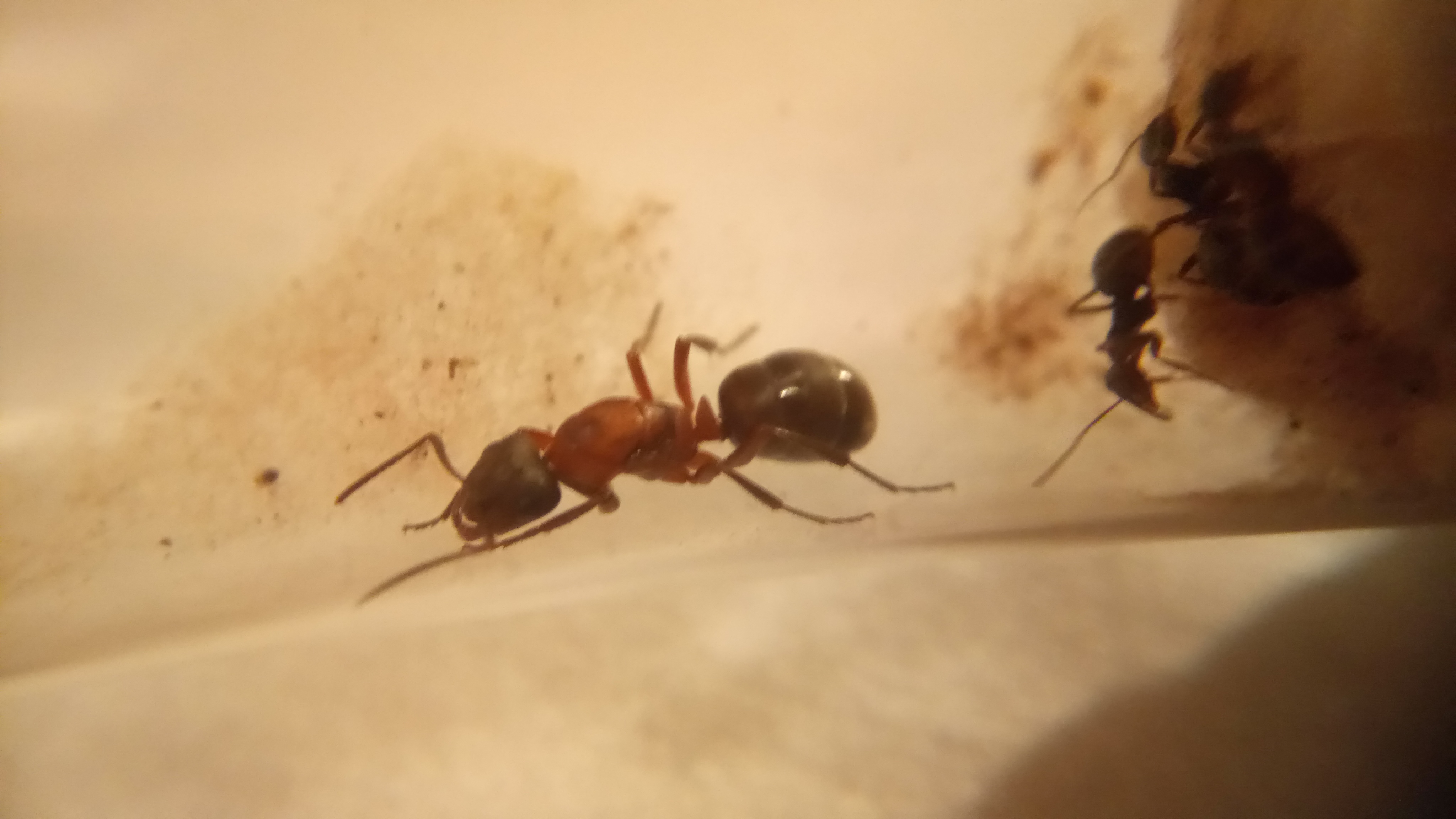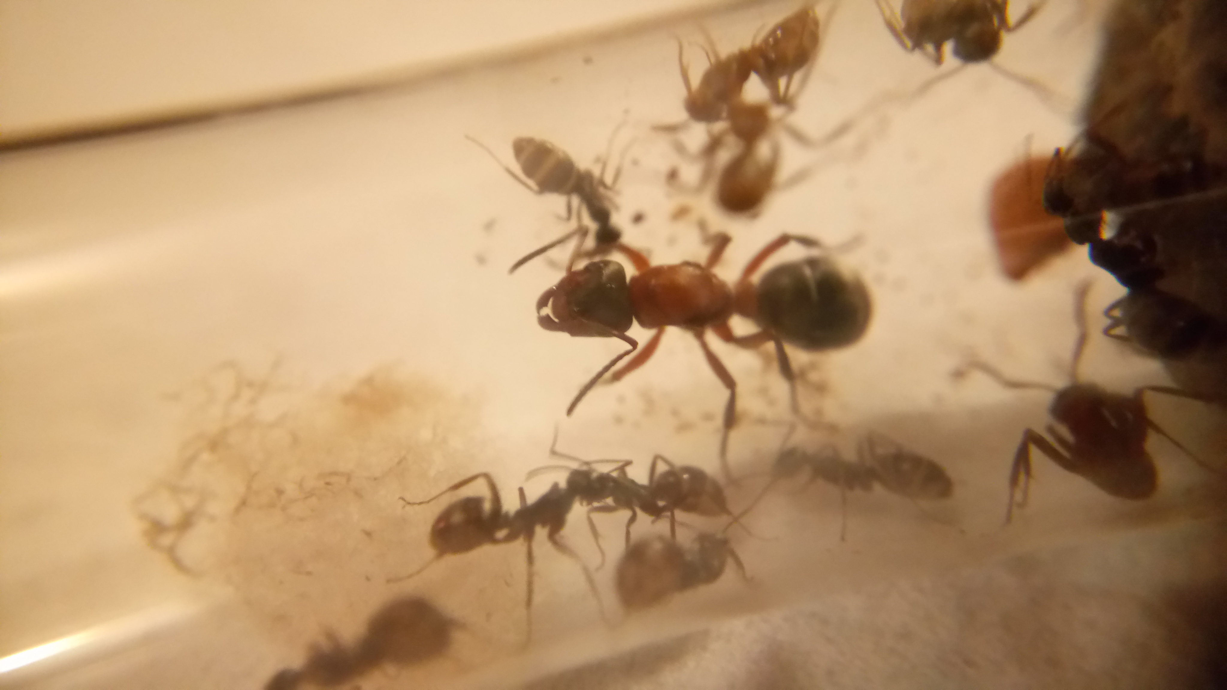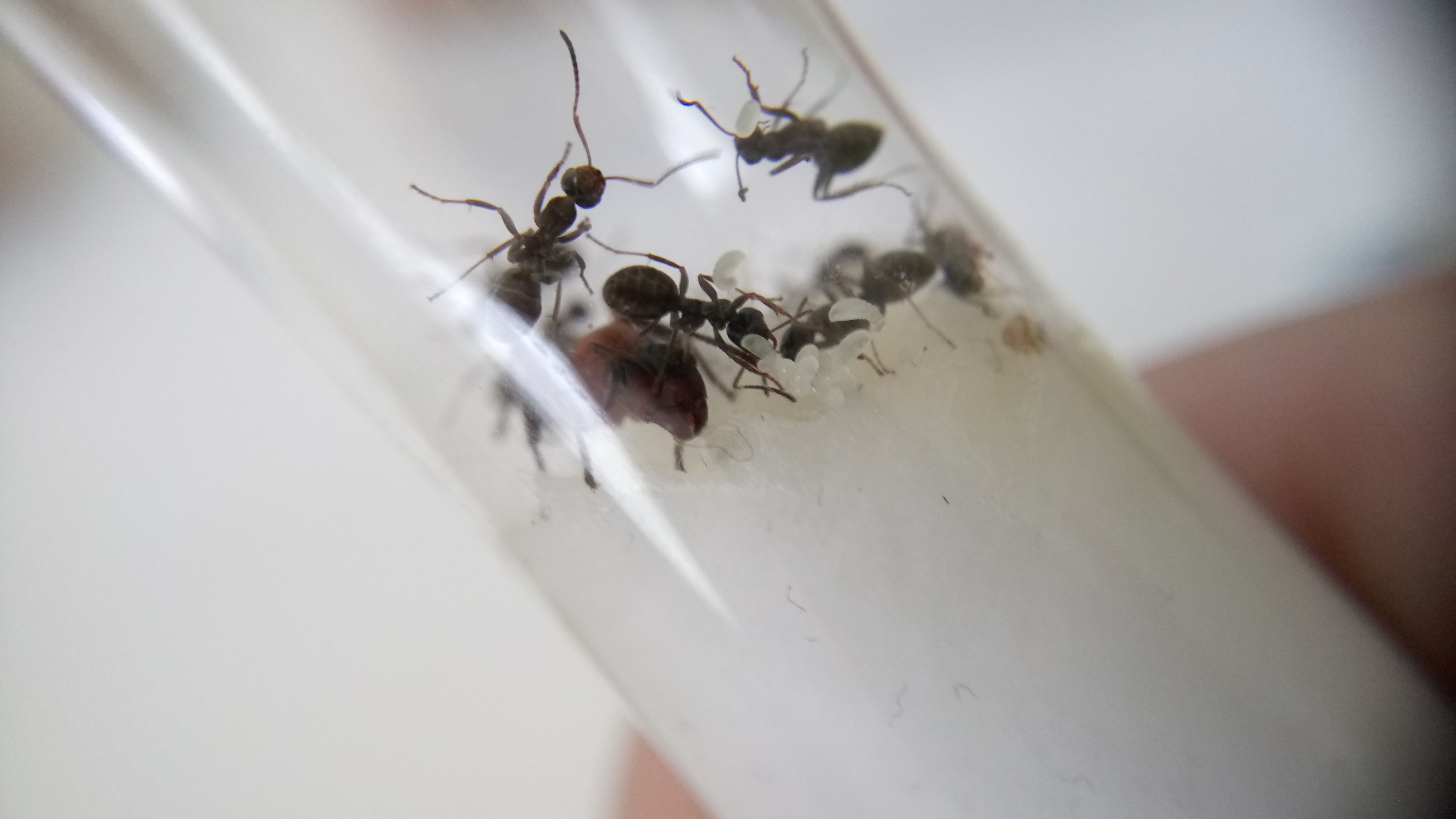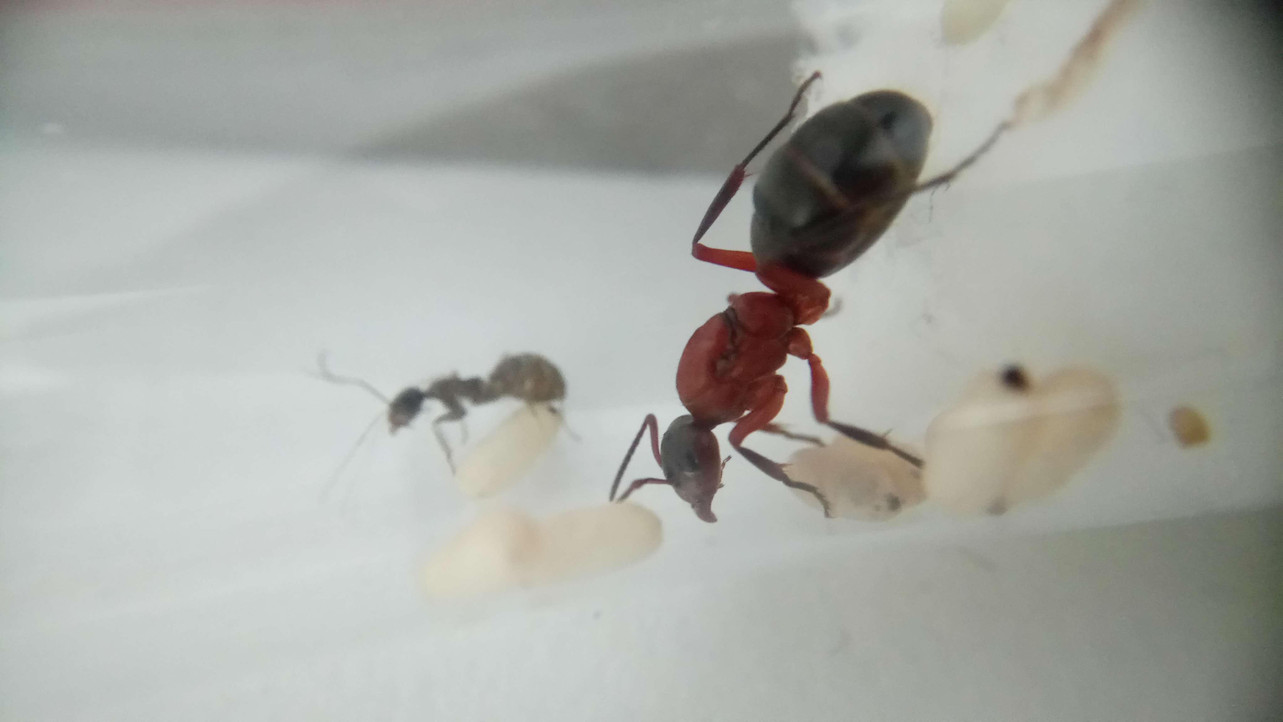 20.06.2018Es ist eine zweite Serviformica Arbeiterin geschlüpft! Gegen 6 Uhr morgens habe ich nochmal nach ihr gesehen und tatsächlich, eine zweite Arbeiterin. Das Bild stammt von Nachmittag, wo die Arbeiterin bereits etwas gefärbt war. Man sieht, dass die