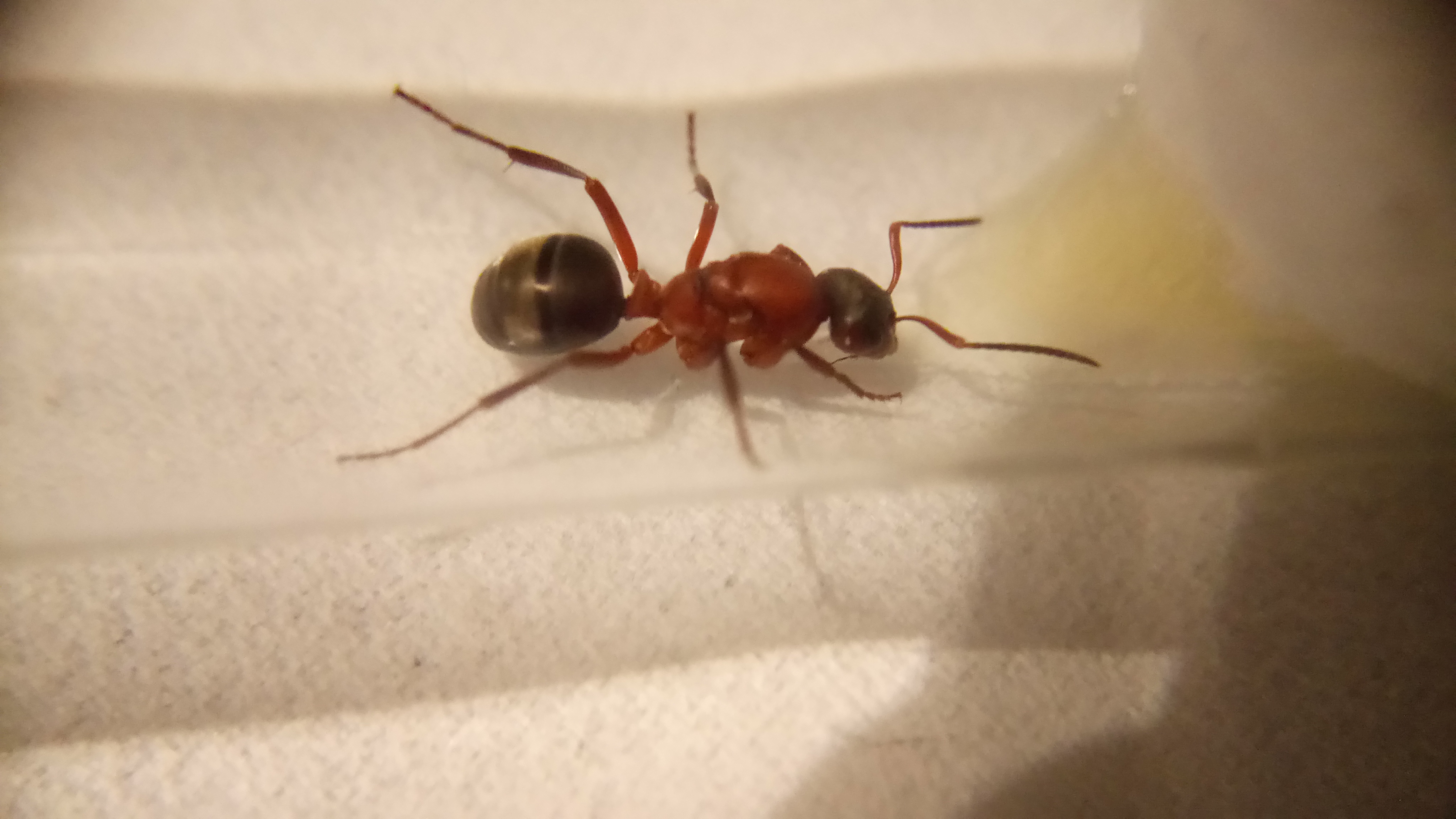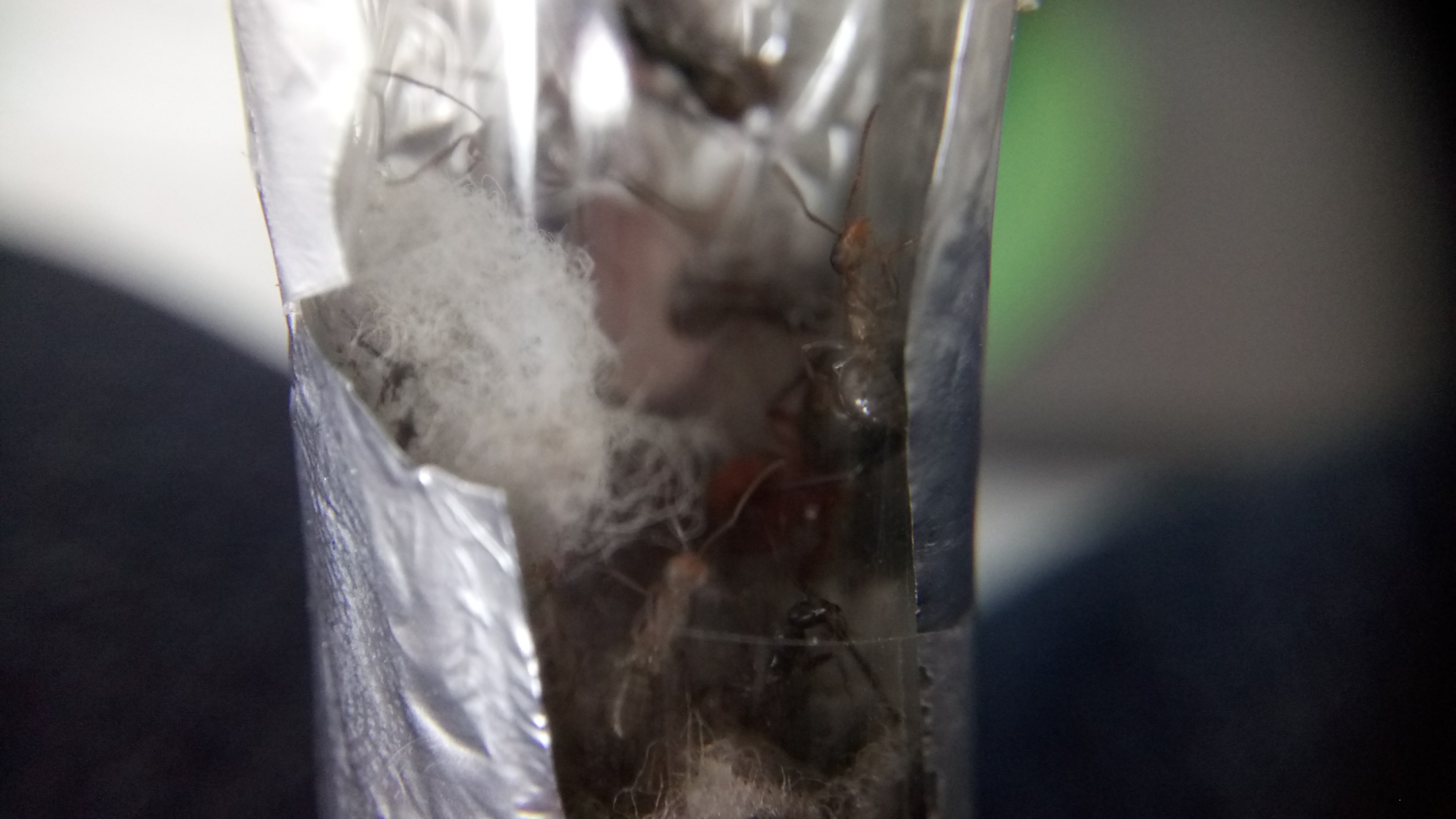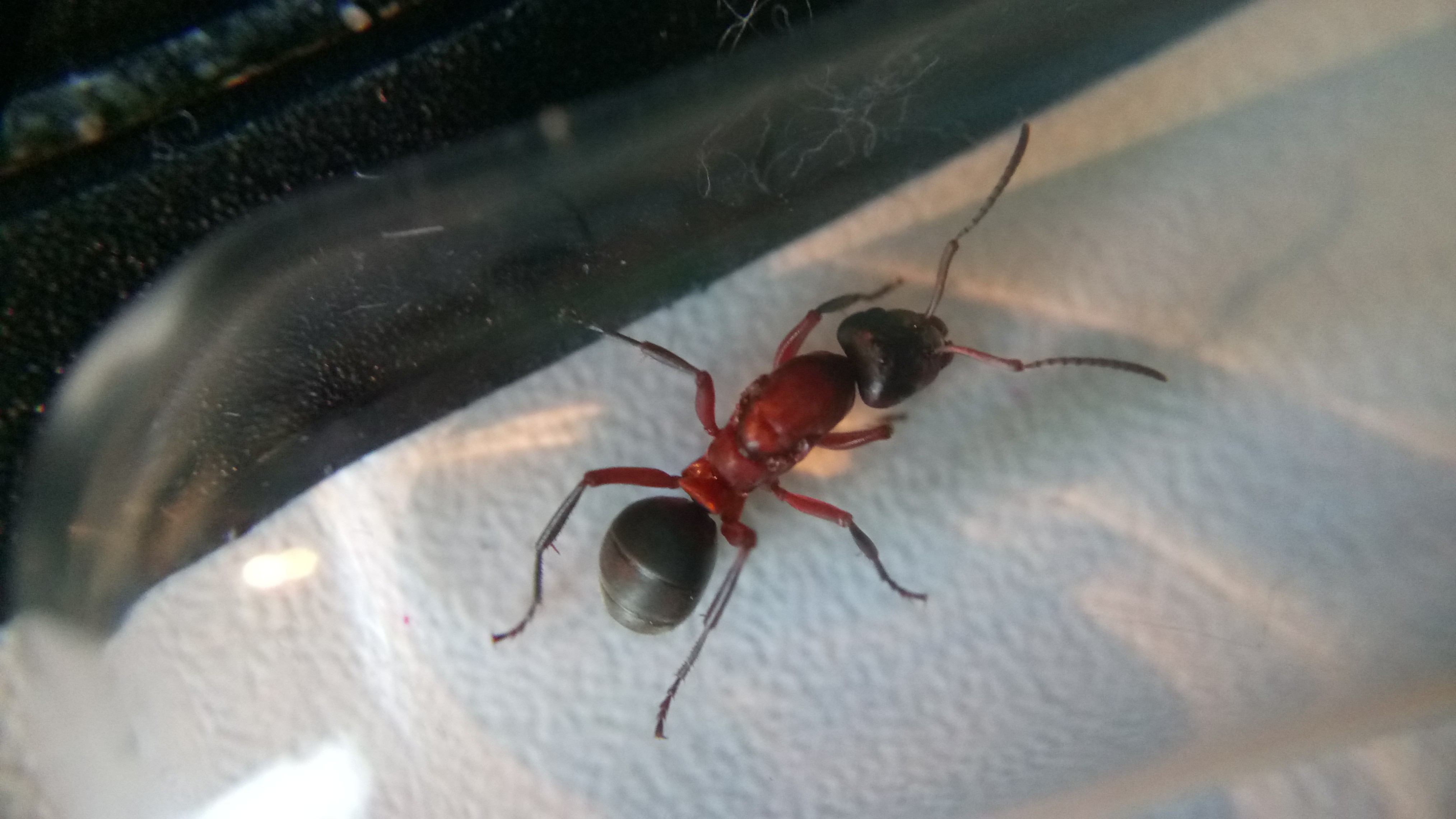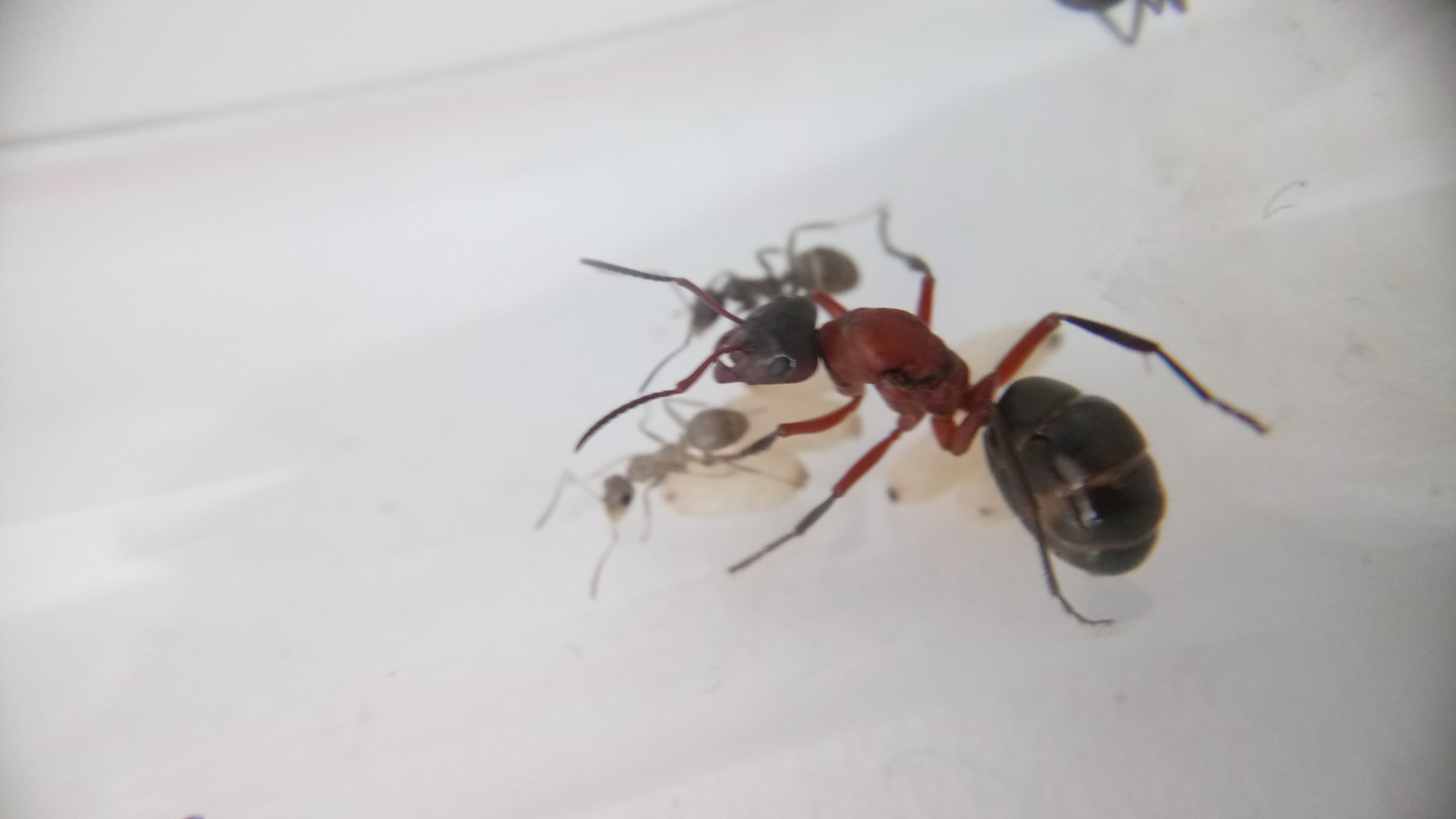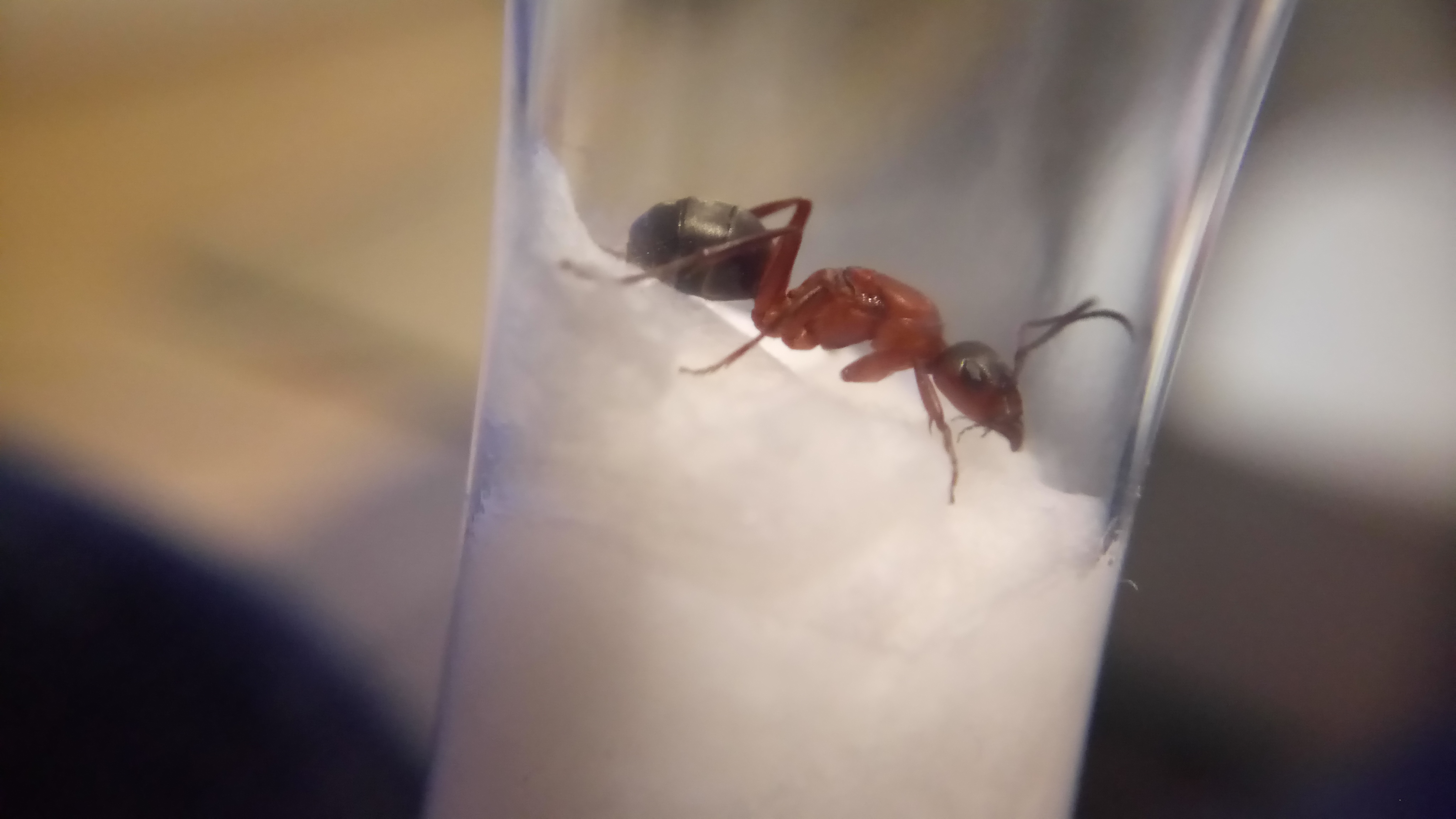 20.06.2018Es ist eine zweite Serviformica Arbeiterin geschlüpft! Gegen 6 Uhr morgens habe ich nochmal nach ihr gesehen und tatsächlich, eine zweite Arbeiterin. Das Bild stammt von Nachmittag, wo die Arbeiterin bereits etwas gefärbt war. Man sieht, dass die