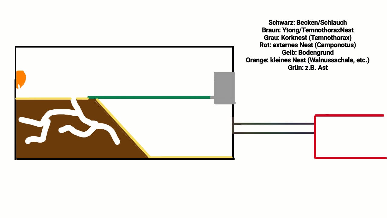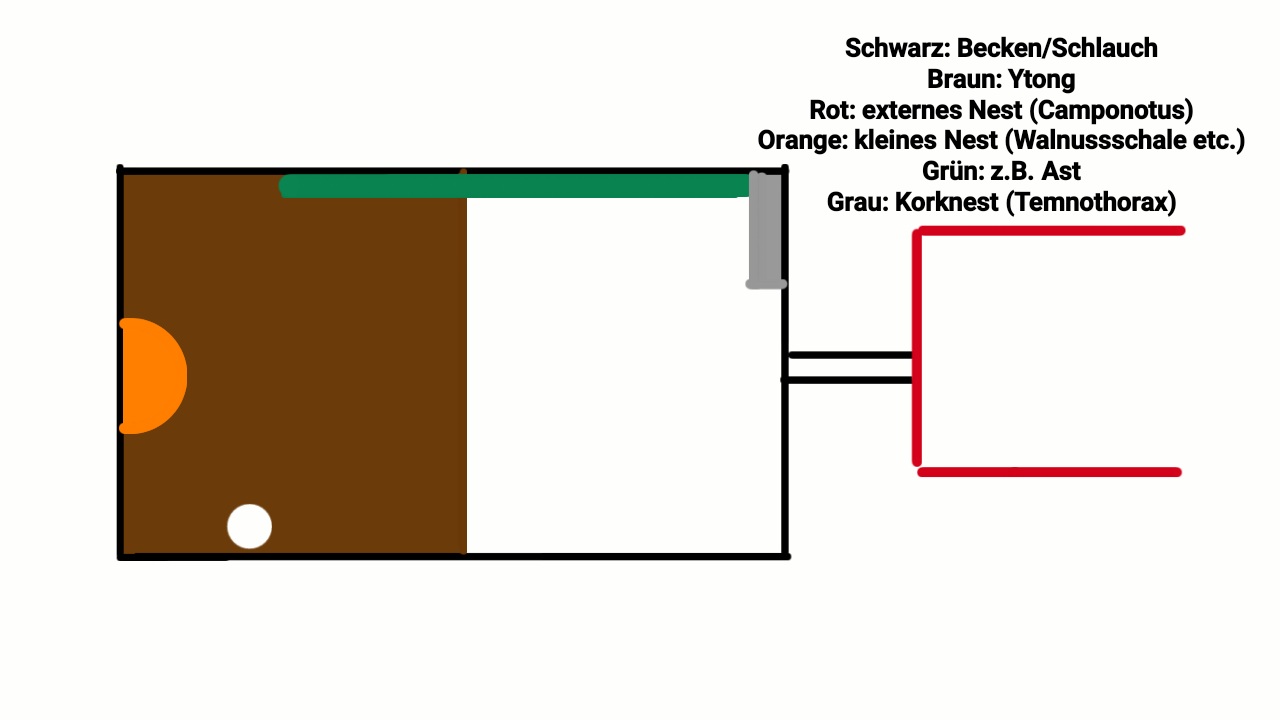 Dafür hatte ich ein kleines Nest (Walnussschale etc., siehe Skizze 1, 2 und 4) und ein Korknest (siehe Skizze 1, 3 und 4) geplant. Das Korknest soll über einen Ast/Stock/ähnliches (Siehe Skizze 1, 3 und 4) erreichbar sein (natürlich könnten sie auch an der Wand des Beckens laufen, doch finde ich die beschriebene Variante dekorativer und gewissermaßen natürlicher).