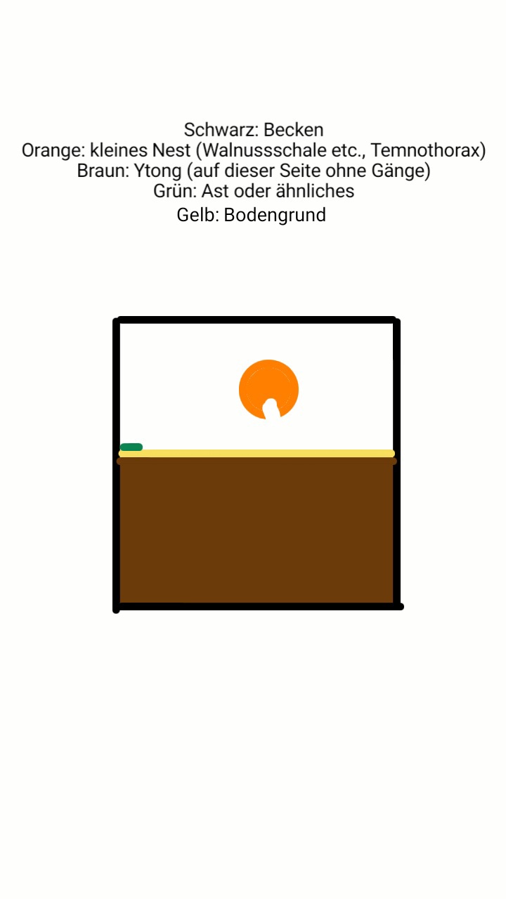 (siehe Skizze 1) Diesen Block will ich, auf einer Seite, als Nest für sie Temnothorax verwenden. Dazu eine Frage, möglicherweise will ich nur einen Teil des Blockes aus Ytong machen (den den ich als Nest benutze) und den anderen Teil, der lediglich als Erhöhung dient, aus einem anderen Material, welches Material könnte ich da verwenden? Das Material sollte bestmöglich kein/wenig Wasser aufnehmen, um Schimmel, so weit es geht, zu vermeiden. (Ist nachvollziehbar was ich meine?