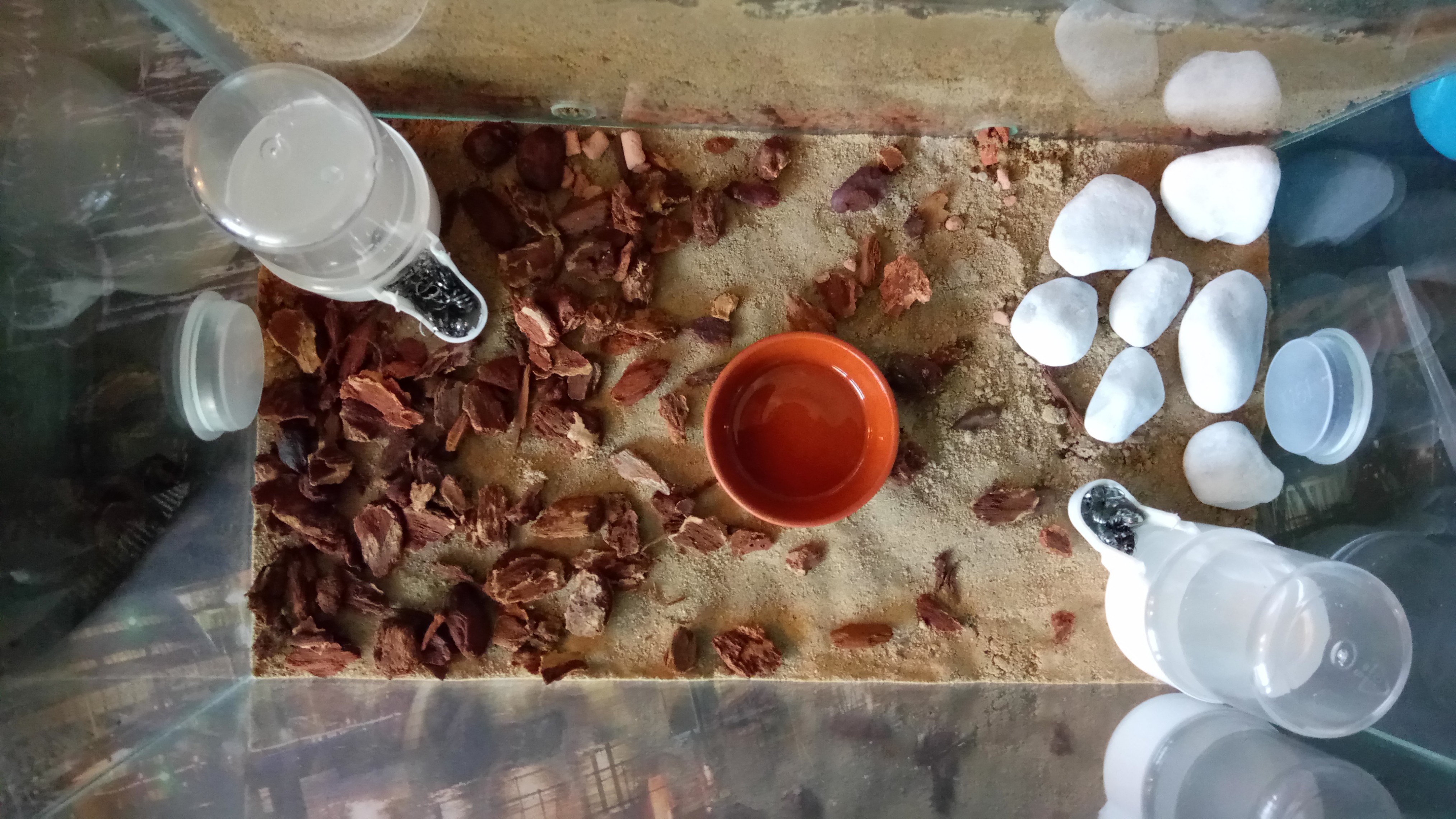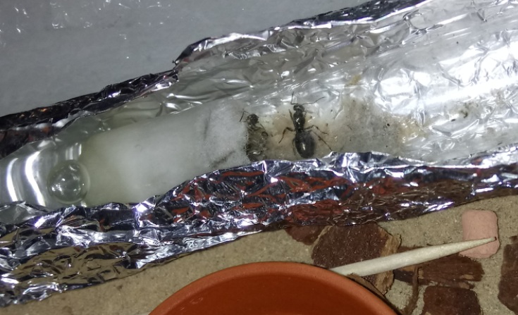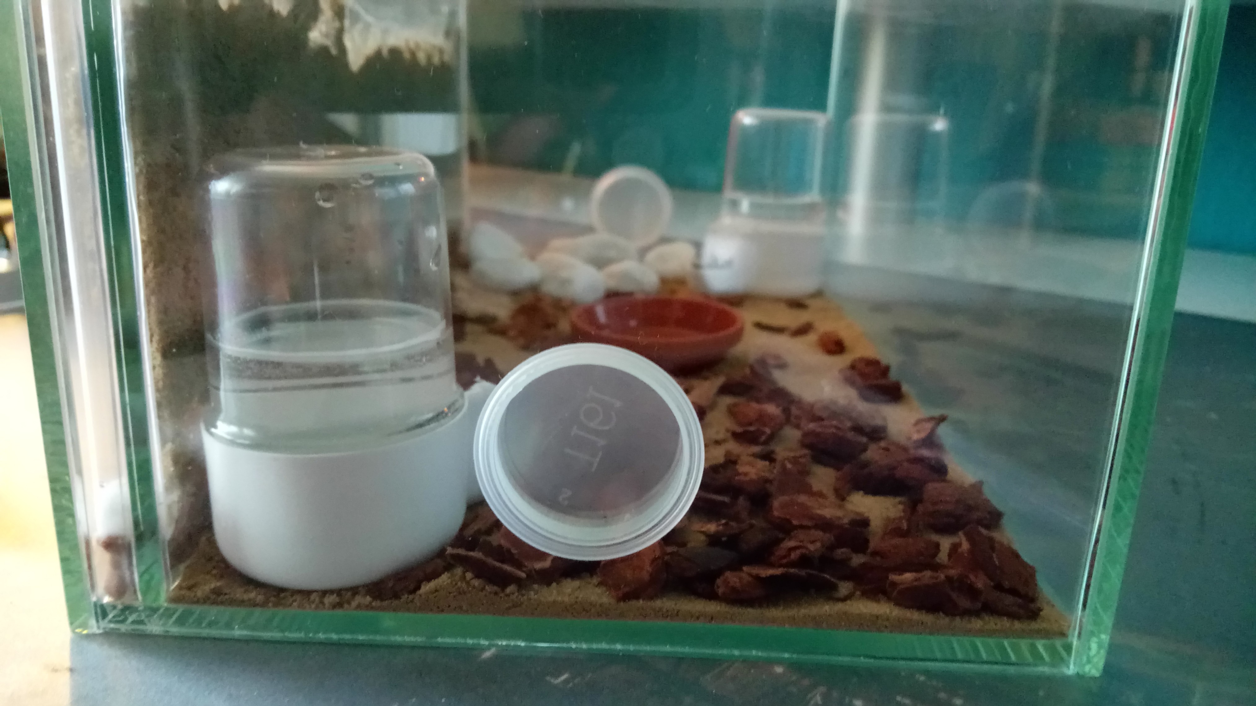 Kurz nach dem Fund (Ende Oktober) wanderten die beiden in den Keller (10-15°C) und Anfang November dann in den Kühlschrank (5-7°C). Im Kühlschrank waren sie dann auch bis heute und werden jetzt noch ca. 2 Wochen im Keller verbringen, bis sie zum ersten Mal in ihr Formicarium kommen.