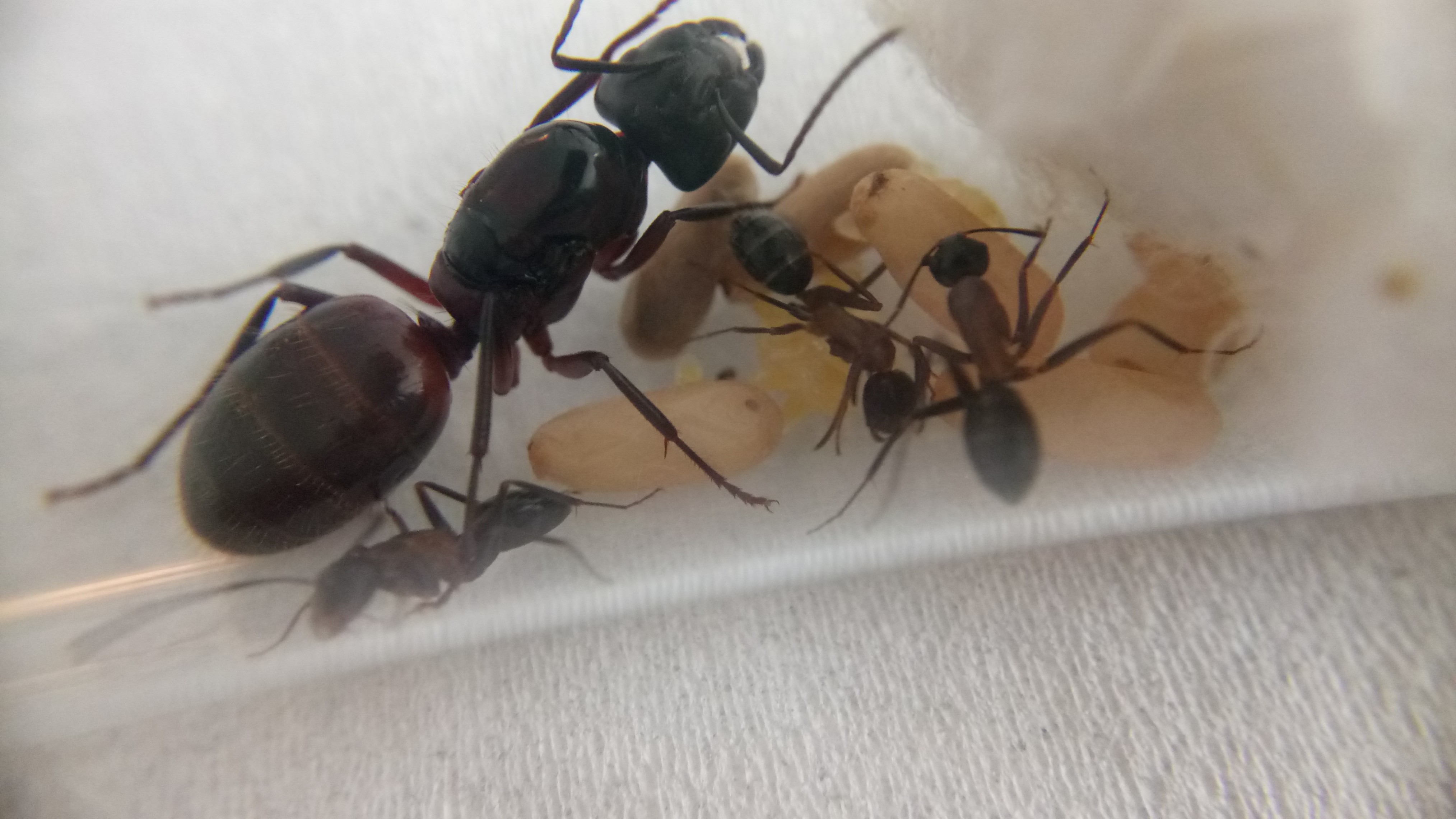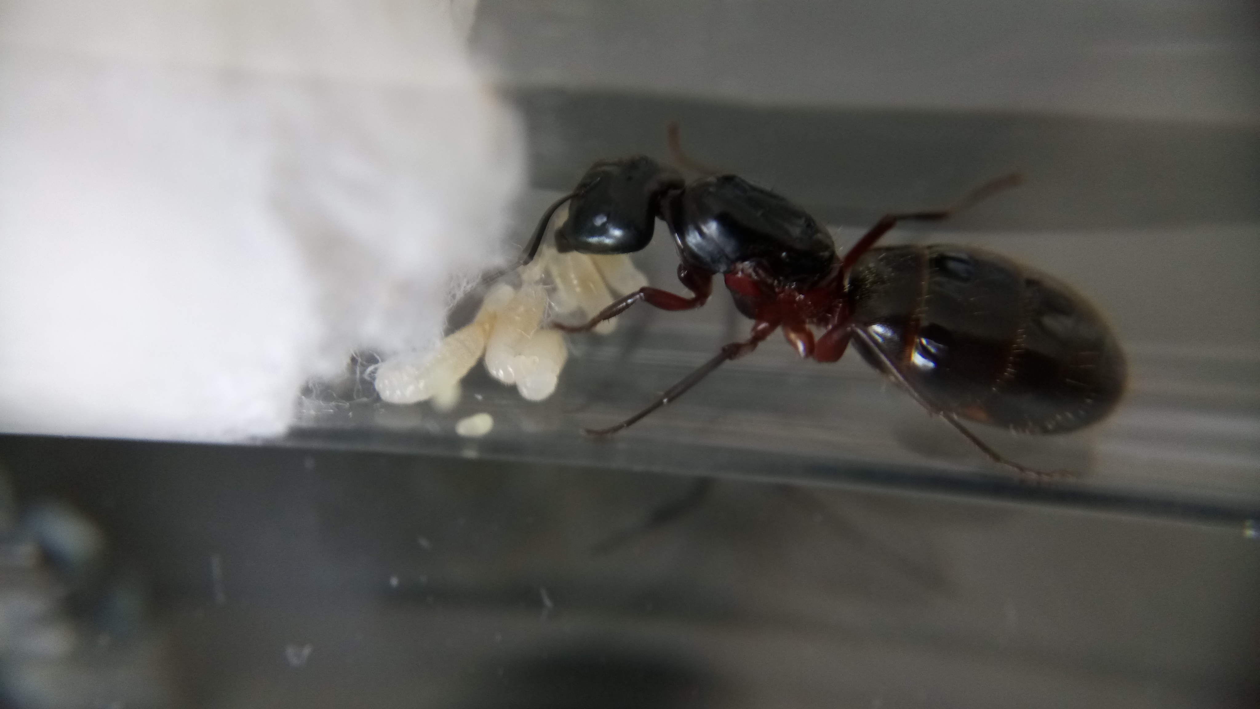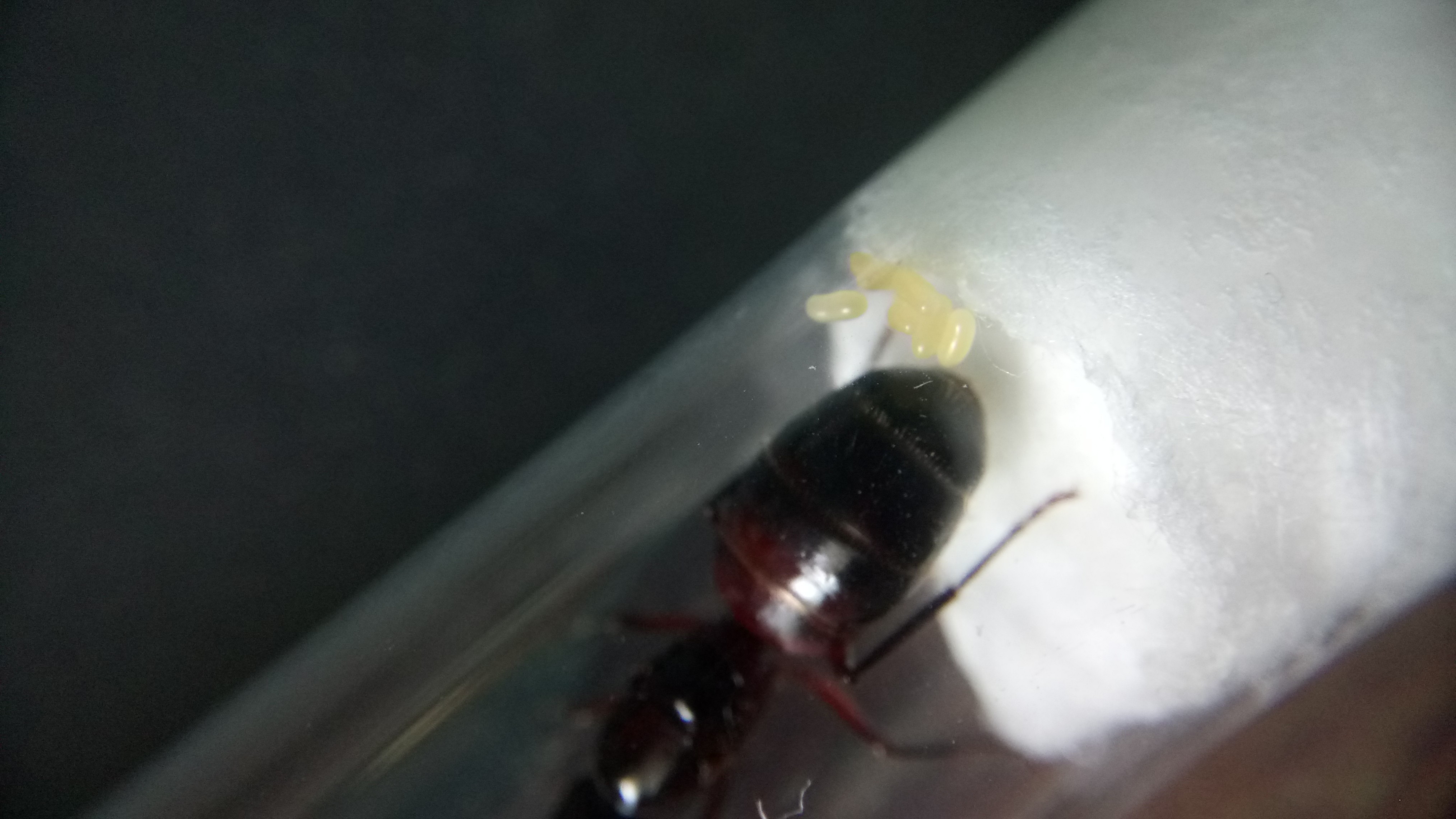 Auch diese Gyne hat weitere Eier gelegt. Auch sind Larven geschlüpft, jedoch weniger als bei der Camponotus herculeanus
