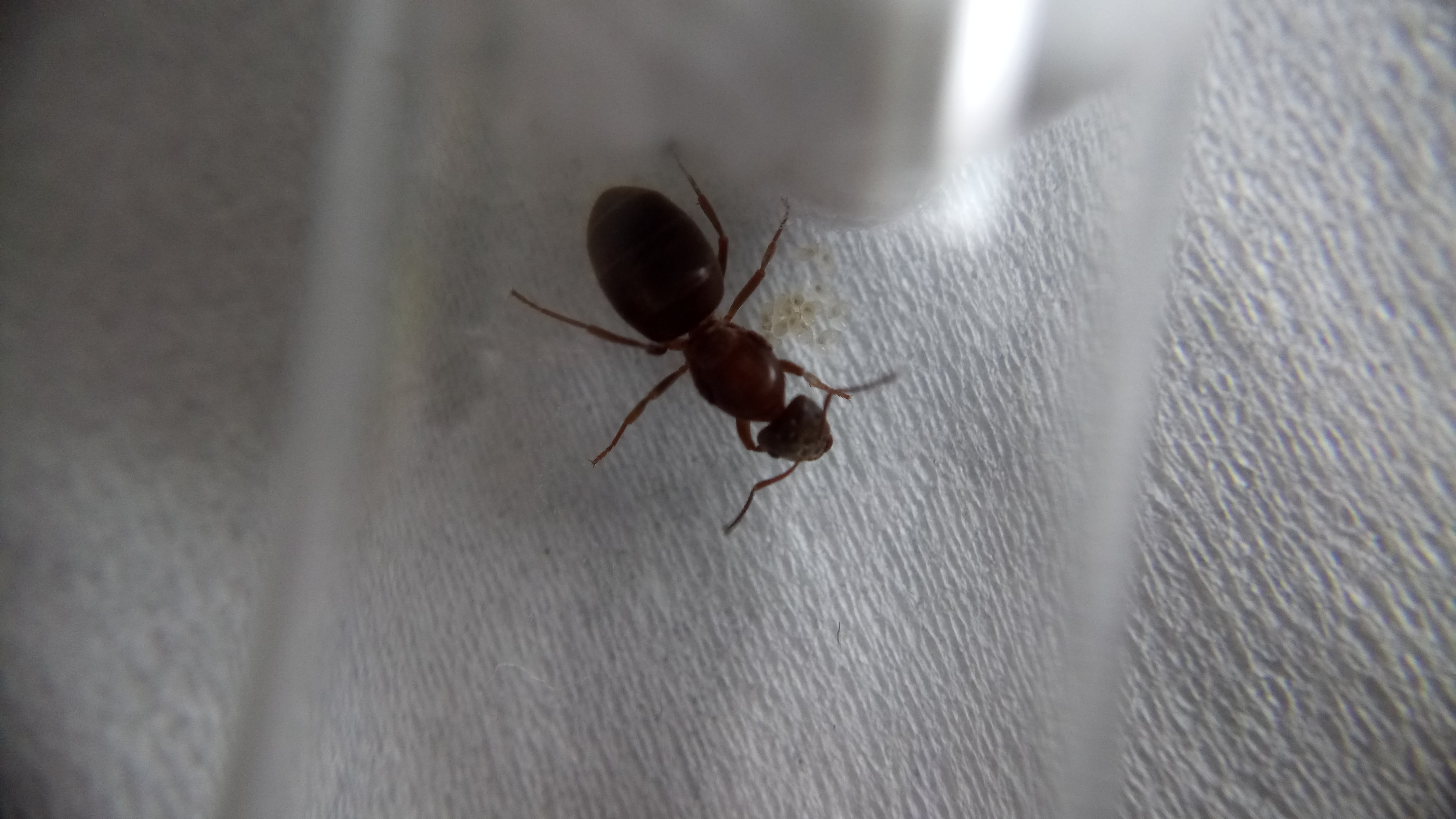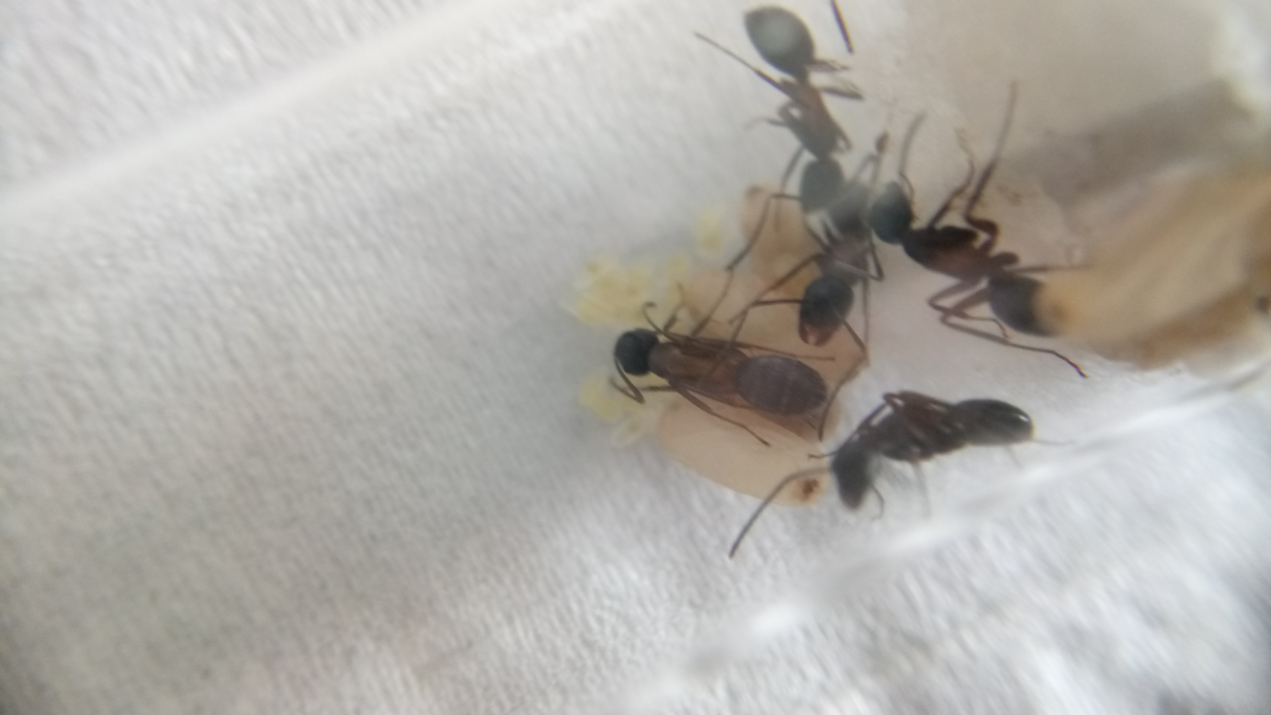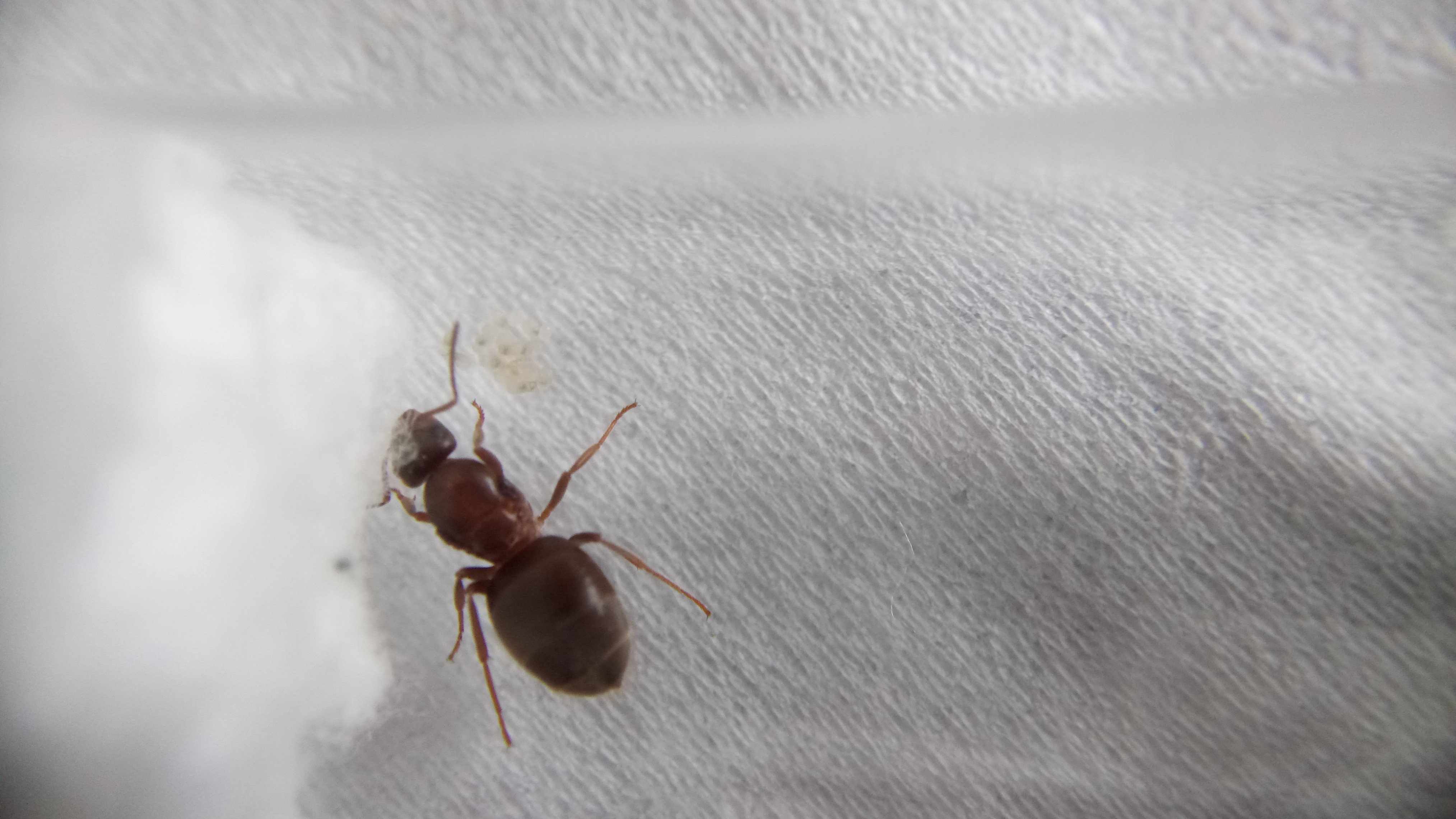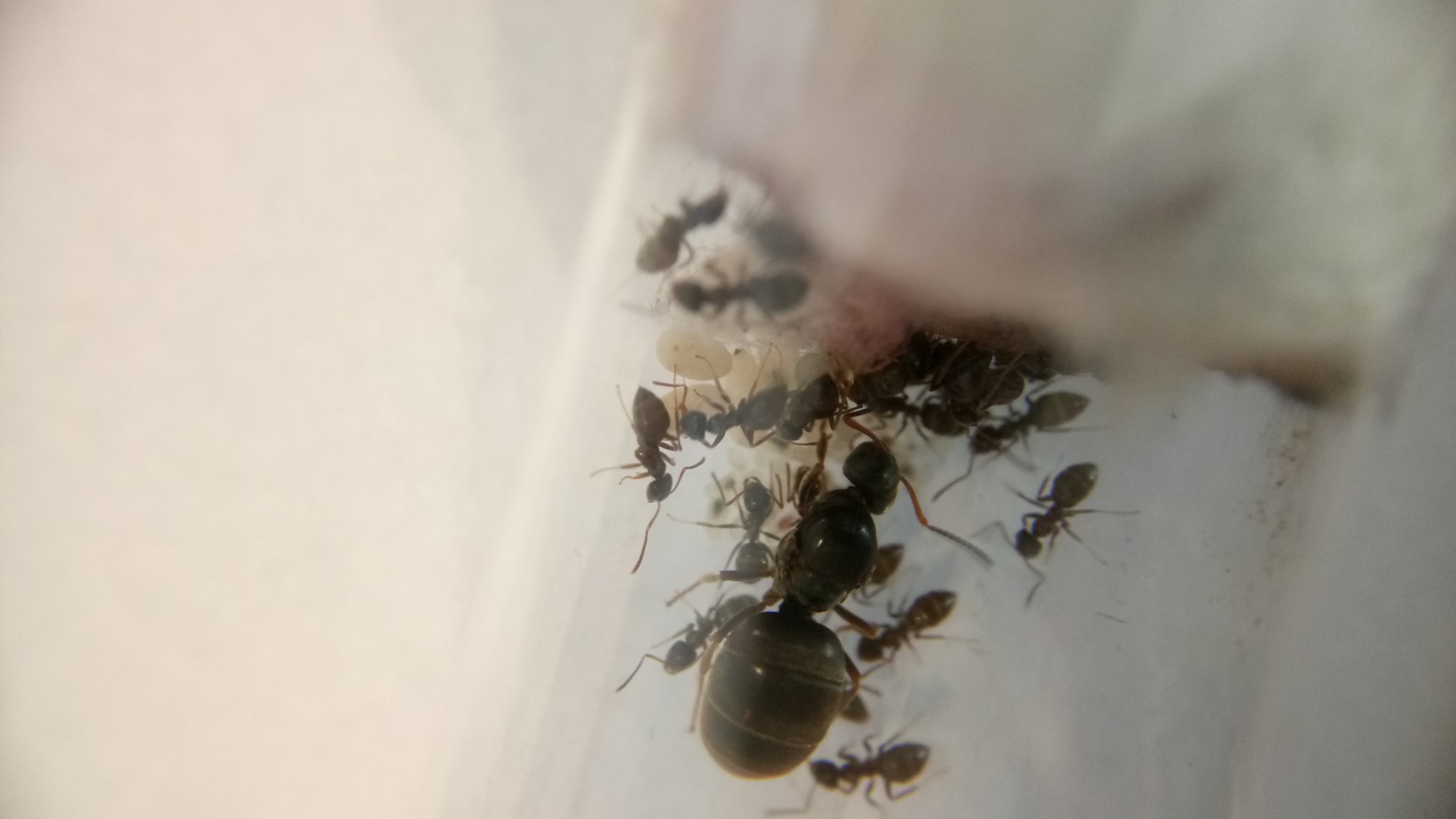 Auch diese Gyne hat weitere Eier gelegt. Auch sind Larven geschlüpft, jedoch weniger als bei der Camponotus herculeanus