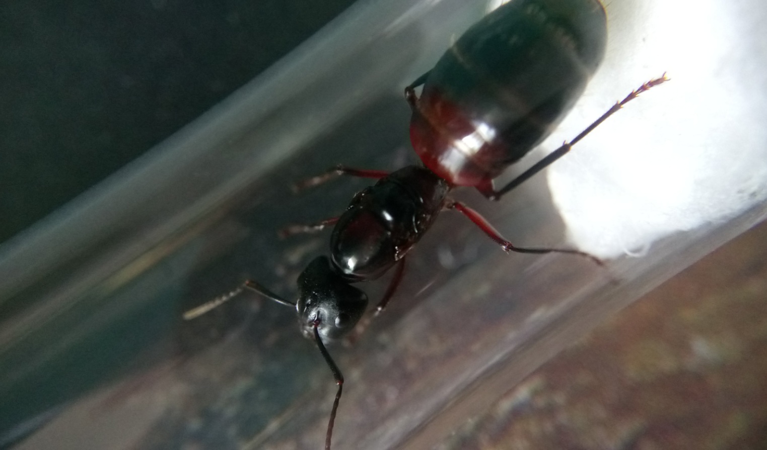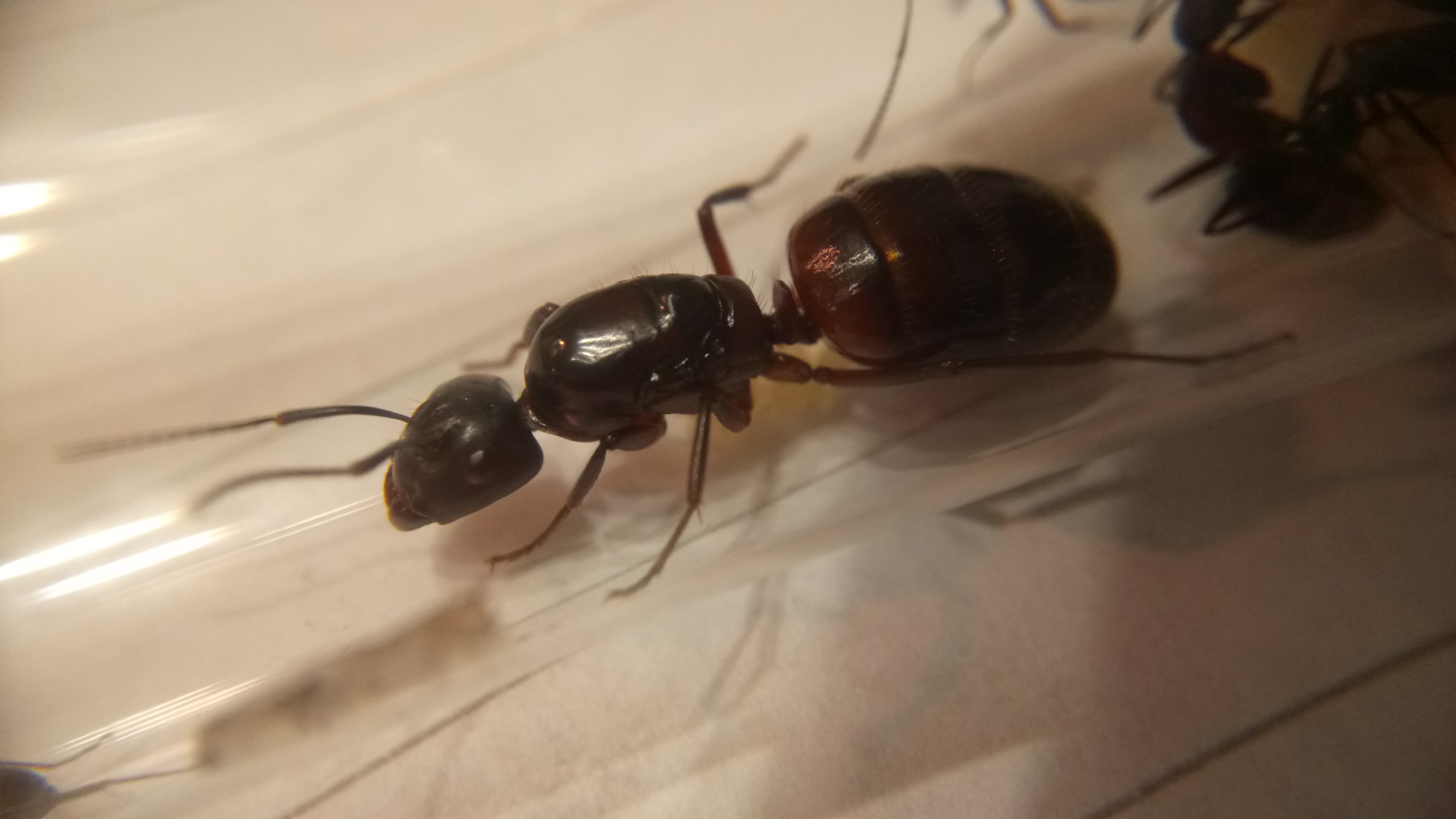 Außerdem habe ich am Sonntag in Thüringen auch eine Camponotus herculeanus gefangen. Die Gyne ist 1,6cm groß und so wie die C. ligniperda echt hübsch.