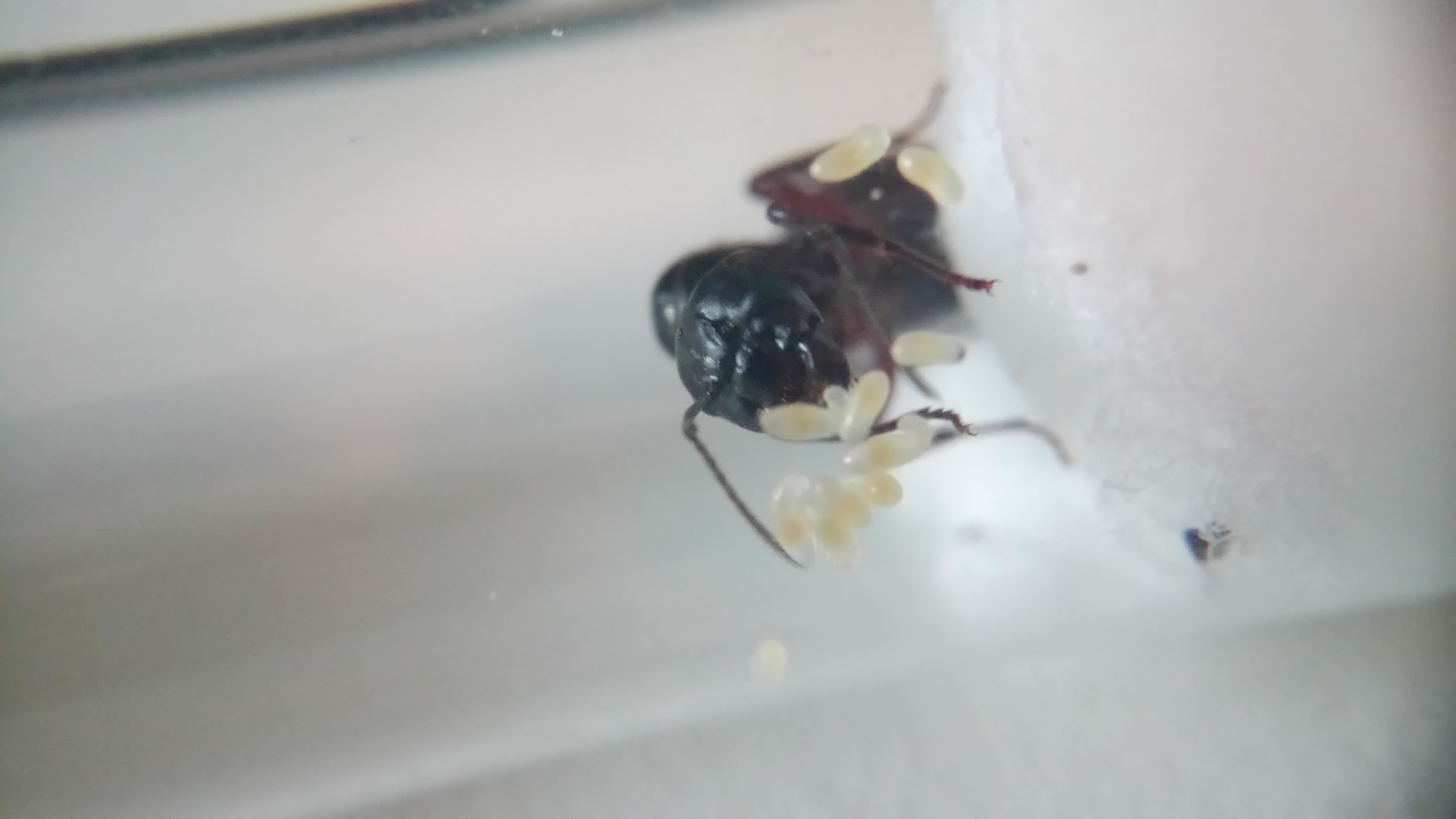 Seit 2 Monaten sind immer entweder Eier, ganz kleine Larven oder keine Brut vorhanden. Die Entwicklung stoppt kurz nach den Schlupf der Eier, kurz darauf versterben die Larven.
