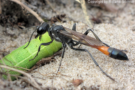 Die Gemeine Sandwespen (Ammophila sabulosa) erreichen eine KörperlĂ€nge von 16 bis 24 Millimetern (Weibchen) bzw. 14 bis 19 Millimetern (MĂ€nnchen) und sind damit die gröĂten Sandwespen in Mitteleuropa.