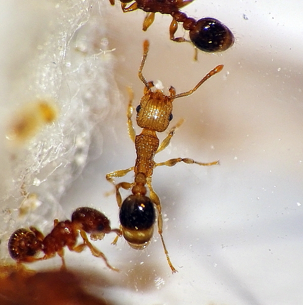 Andere Arten legen ihnen Futterbrocken auf den Bauch, die dann gefressen werden, zum Beispiel Arten der Gattung Pheidole.