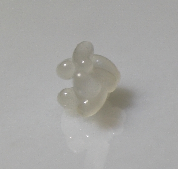 Man kann ungefähr in der Mitte der Larve einen dunklen Fleck erkennen: