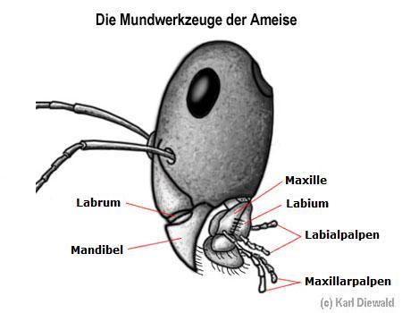 Die Mundwerkzeuge der Ameisen werden dem kauend-beißenden Typ zugeordnet.