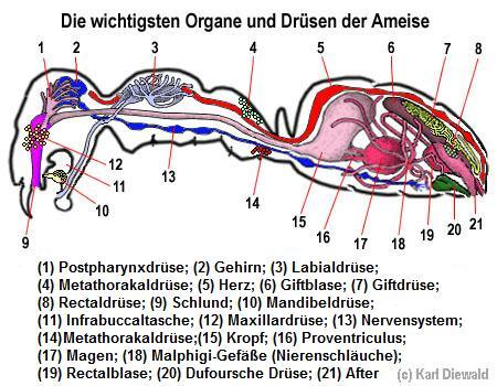 Anatomie der Ameise - Drüsen und Organe