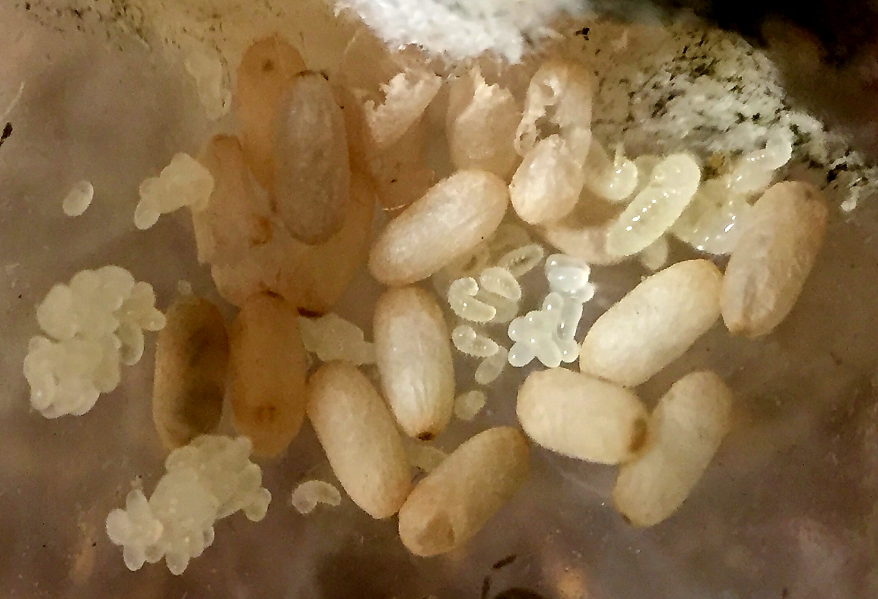 Die Puppen der meisten Arten benötigen eine relativ trockene und möglichst warme Umgebung - deshalb ist es auch normal, dass sie von Arbeiterinnen beaufsichtigt, kurzfristig außerhalb des Nestes in der Sonne oder auf einem erwärmten Stein gelagert werden.