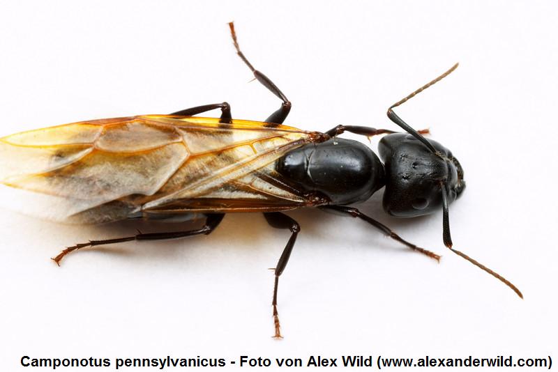 Alate Jungkönigin von Camponotus pennsylvanicus - man erkennt gut die Struktur der Flügel.