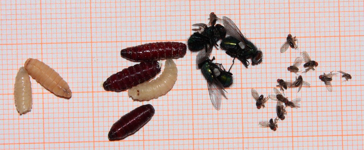 - Fliegen, Fliegenlarven, Fliegenpuppen
