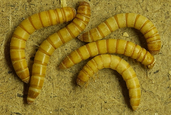 Bevorzug werden Mehlkäferlarven angenommen die sich frisch gehäutet haben.