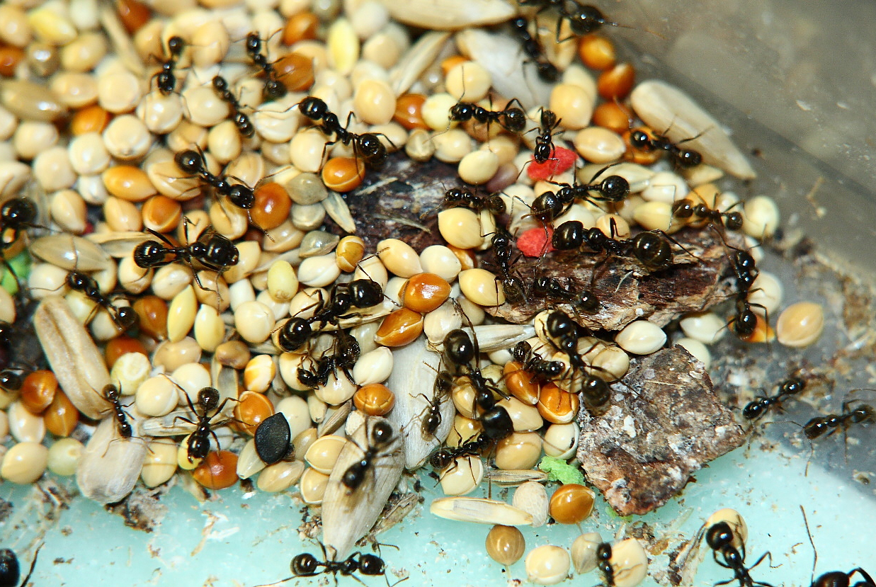 Einige Pheidole Arten können auch im geringeren Umfang Körner eintragen.