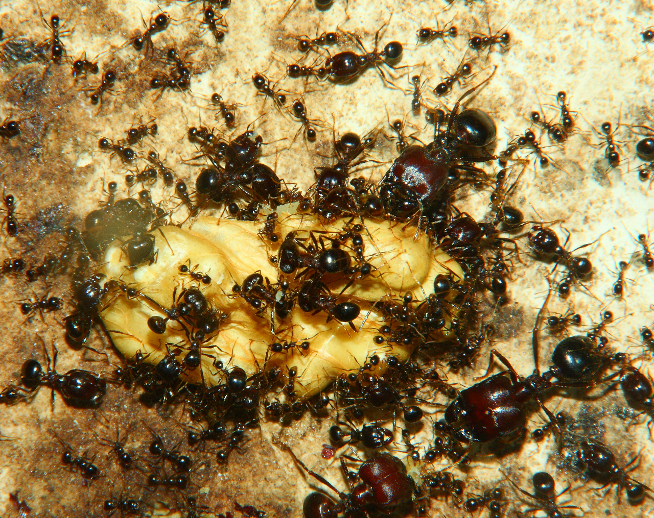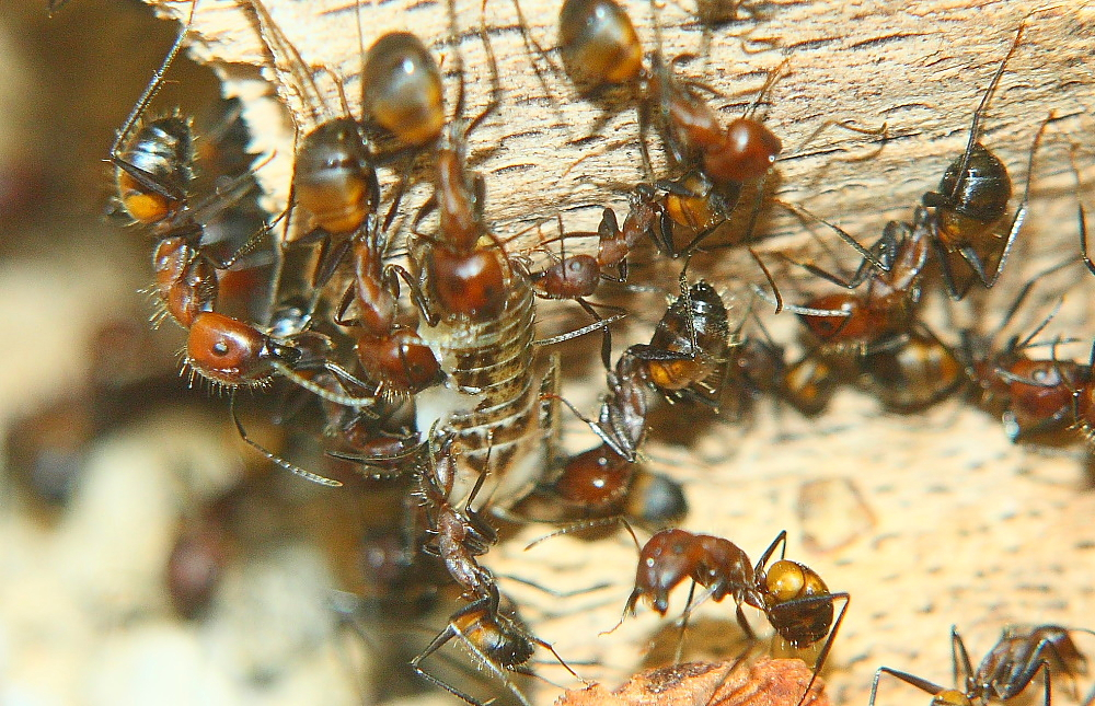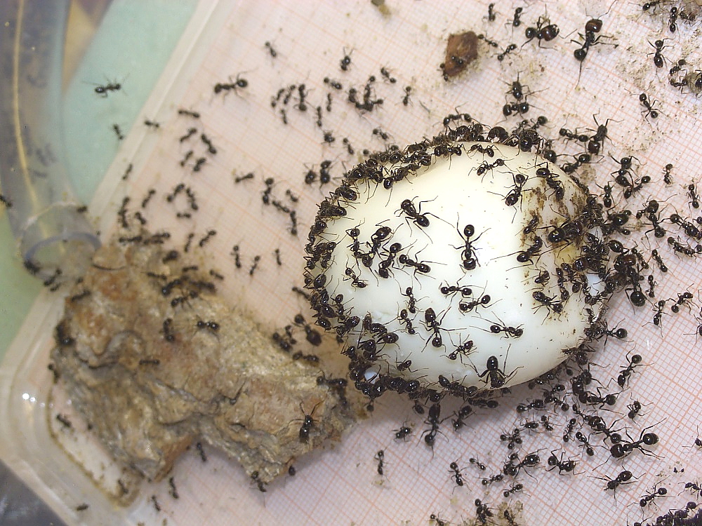 Diese lassen sich einfach zerteilen (Schere, Rasierklinge, Skalpell) die Voraussetzung um sie kleineren Ameisenarten anzubieten.