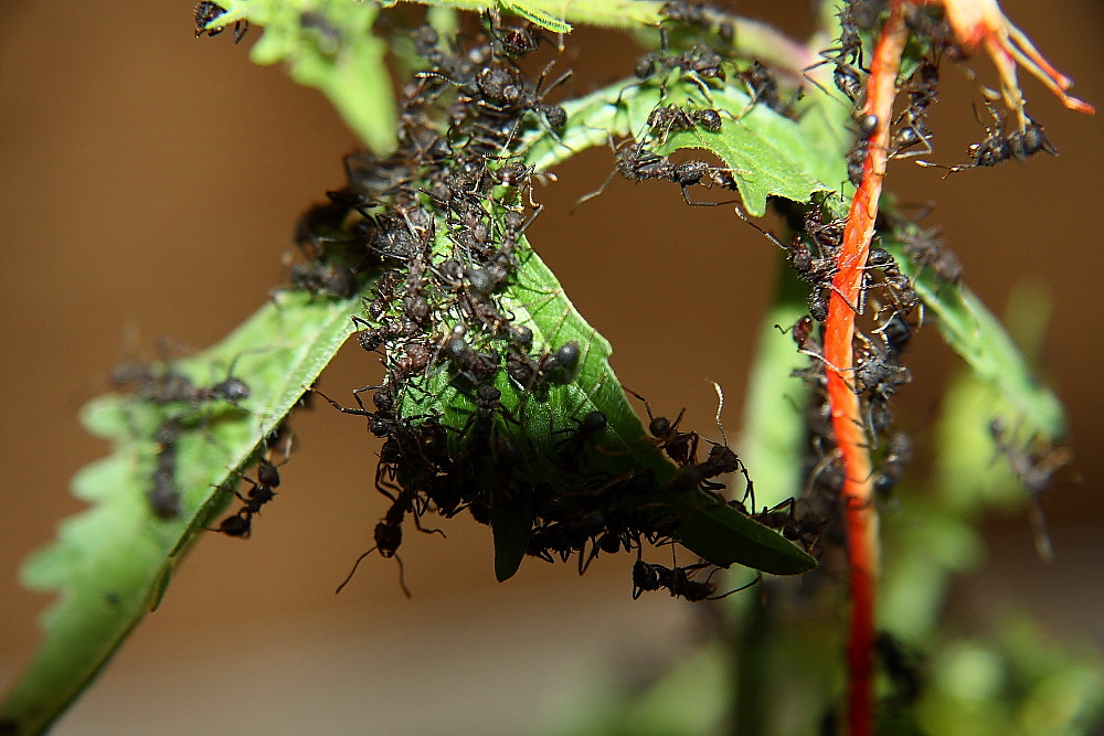 Ameisen brauchen Eiweiß und Kohlenhydrate um ihren Nachwuchs aufzuziehen und sich selber zu versorgen.