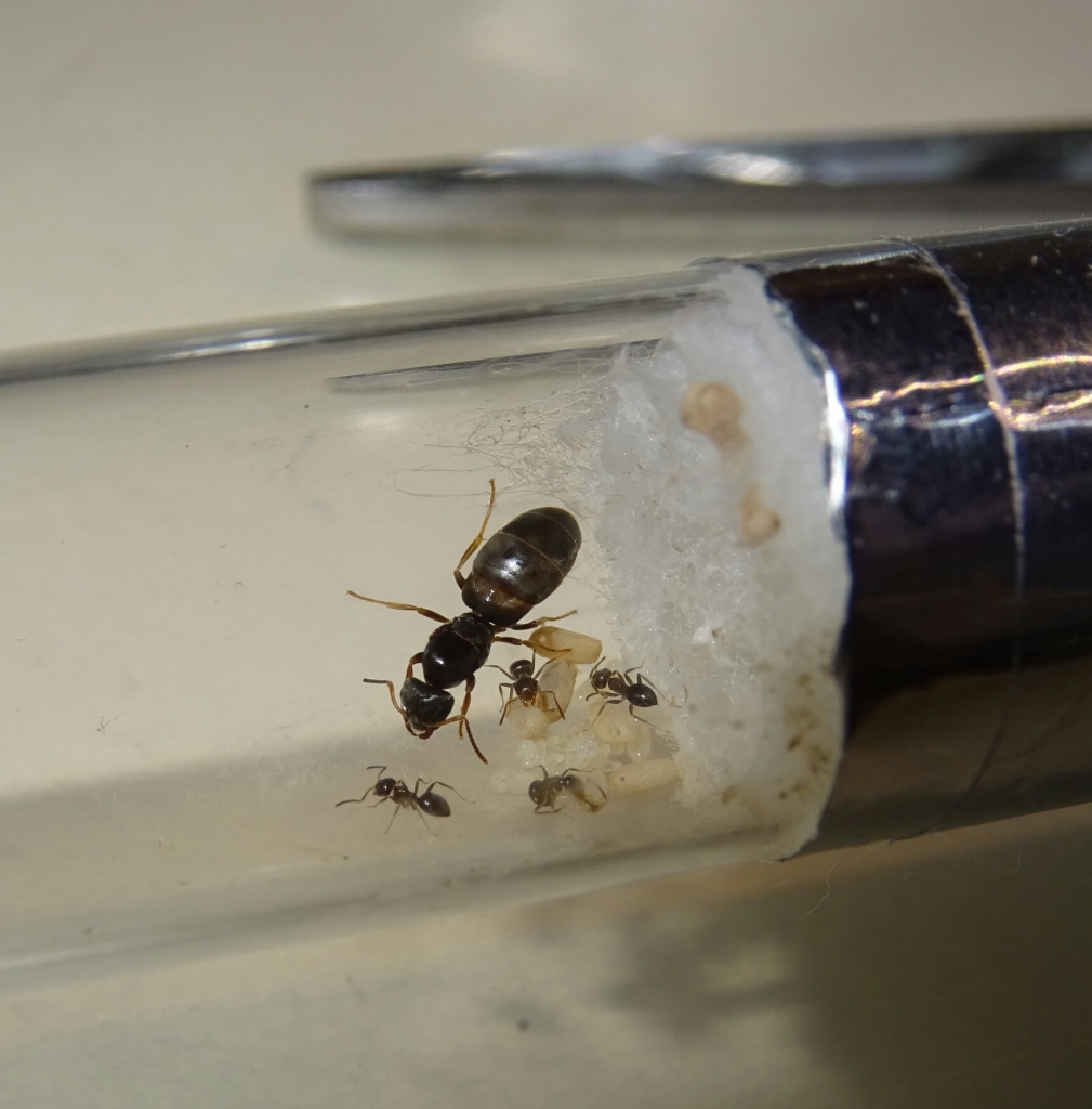 Lasius brunneus - Gyne, Brut und 5 Pygmäen