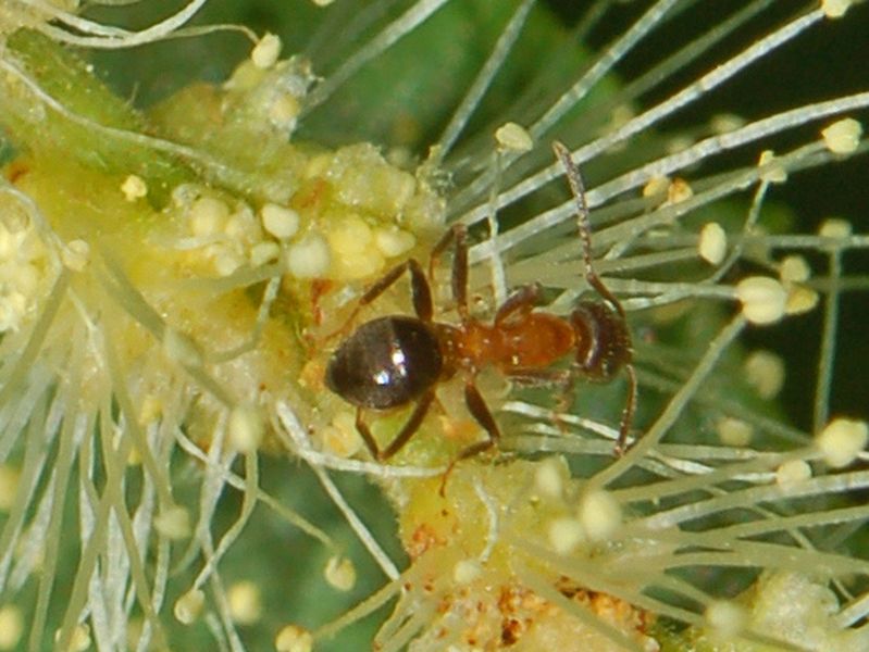 Nahrung: vor allem trophobiotisch. Dauernahrungsplätze (Läusekolonien) werden "beschlagnahmt" und verteidigt. Auch
