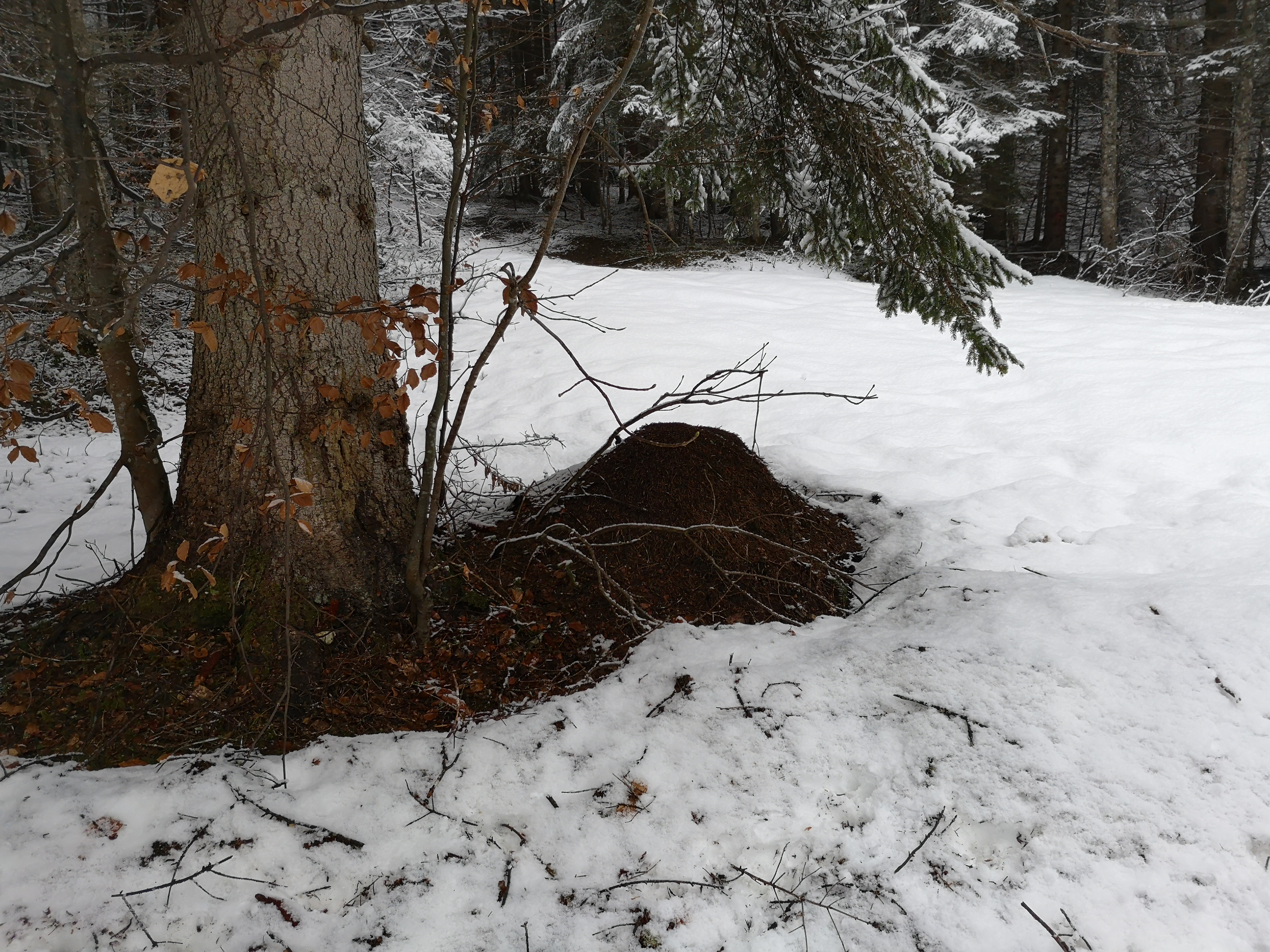 Waldameisennester ließen sich trotzdem finden, wenngleich natürlich keine Aktivität zu beobachten war.