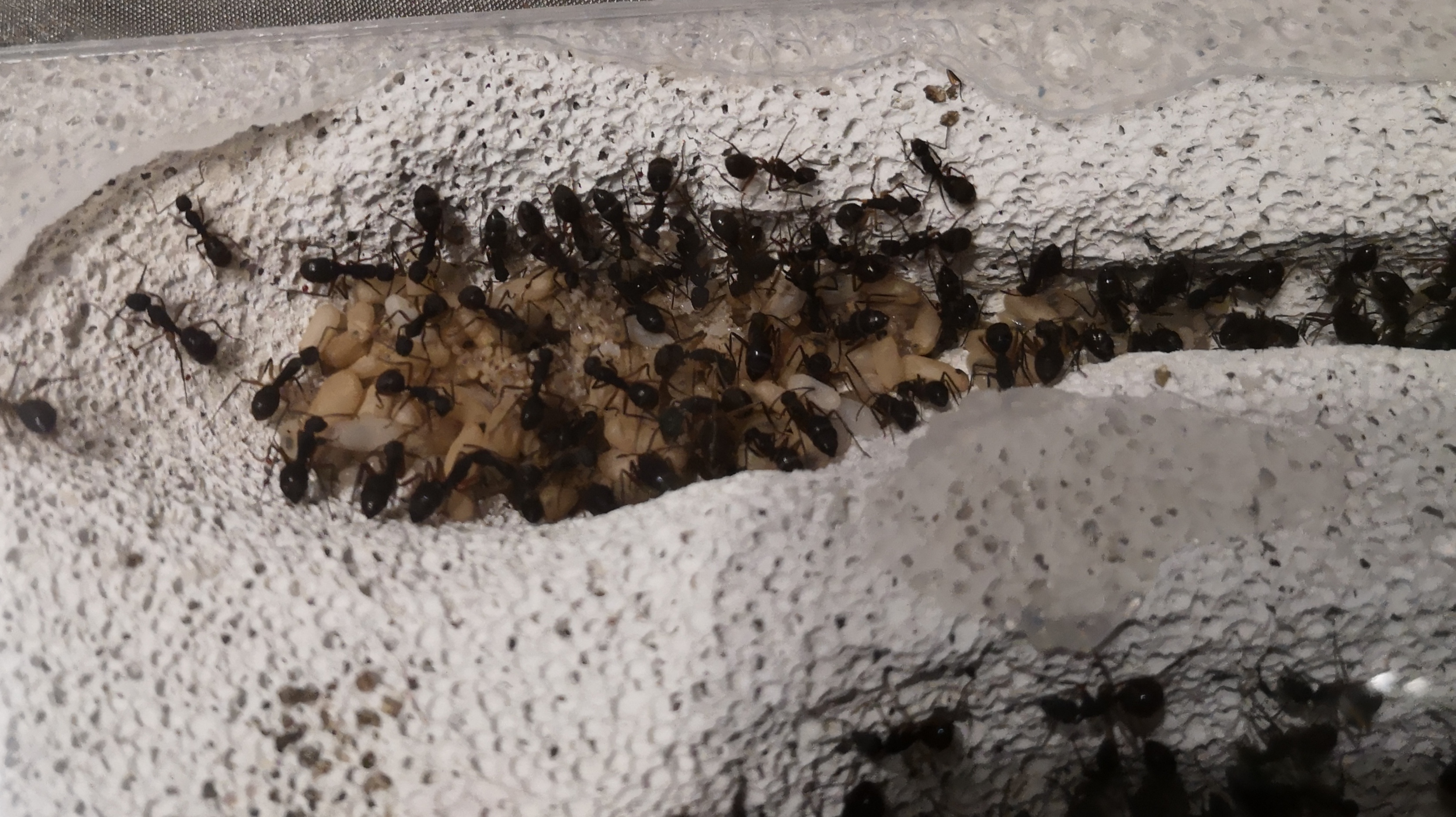 Camponotus brasiliensis - obwohl das Nest verschiedene Temperatur- und Feuchtigkeitsbereiche bietet, wird die gesamte