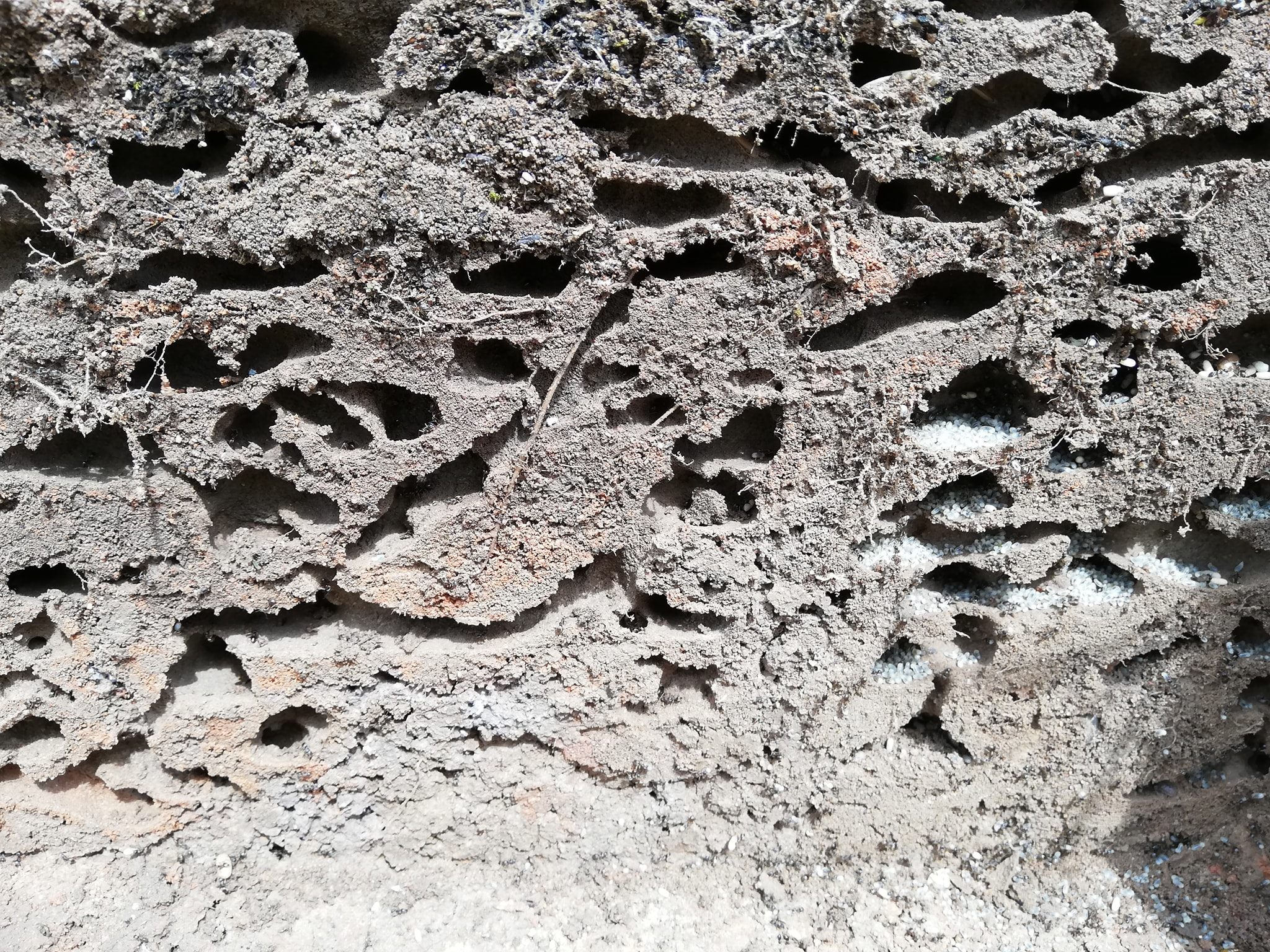 Ein, wie ich finde, recht ansehnliches Naturnest von Lasius cf. niger - da hat jemand angefangen Steine wegzubauen einer alten Mauer: