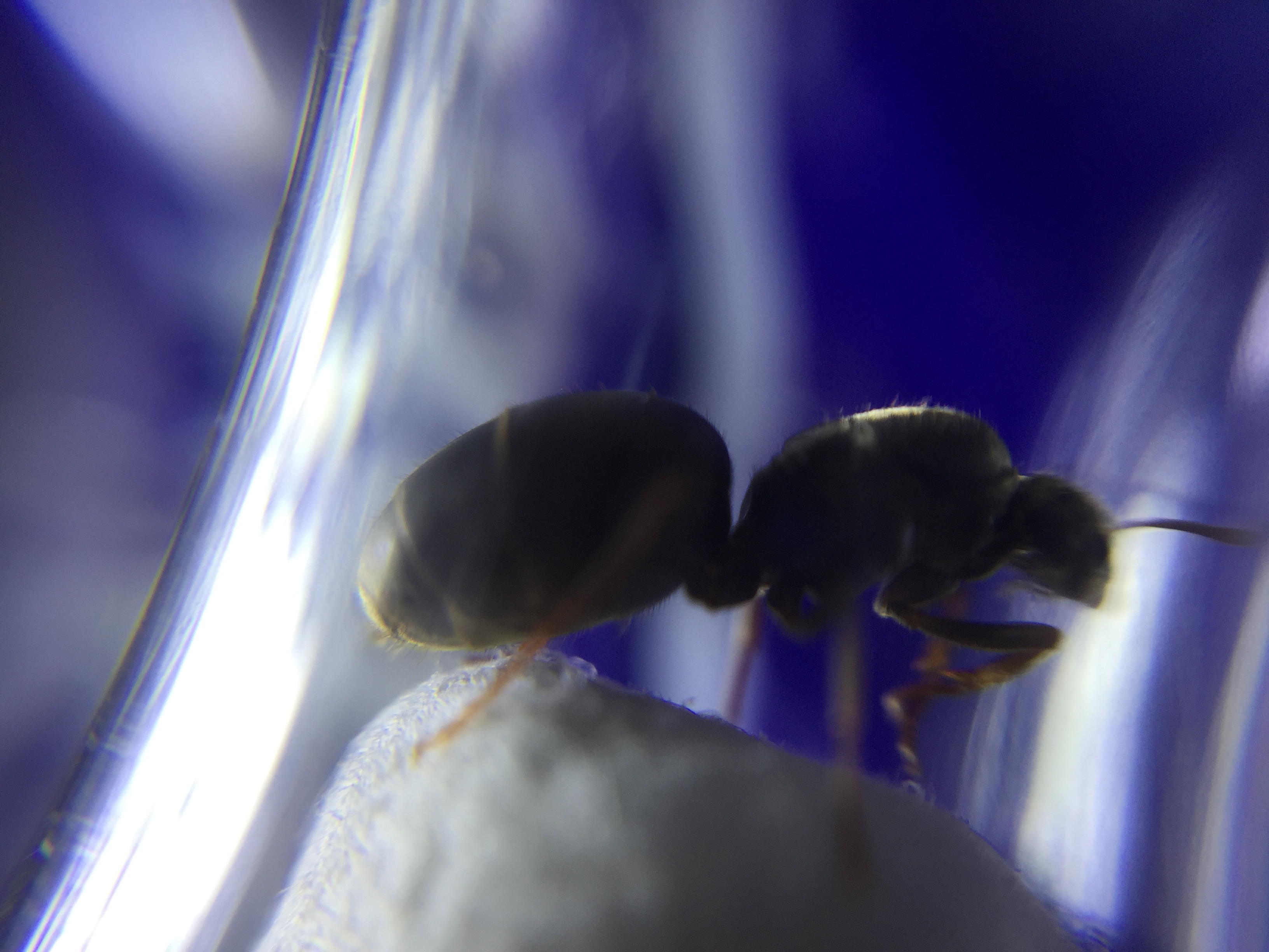 Die Fotos habe ich auch nur mit dem Handy gemacht. Ich hatte mir fĂŒr 10⏠so eine Makrolinse zum vor die Kamera klemmen geholt, bei den lahmen Gynen klappt das super. Die Arbeiterinnen sind allerdings zu flink.