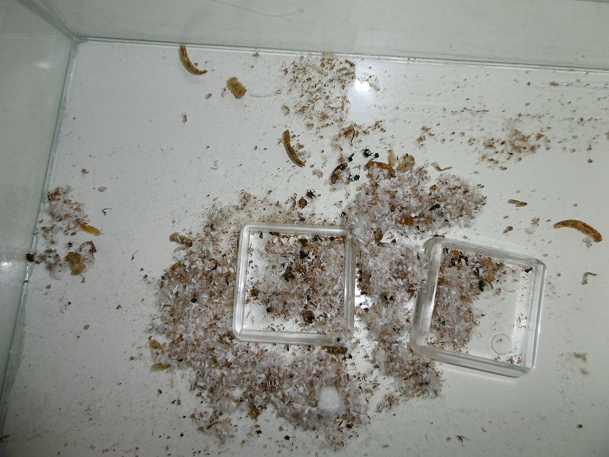 Bei den C. vagus hatte ich erst die Motivation die Anlage sauber zu halten, aber das haben sie mir gerade weil sie ein Nest aus Kork haben so ziemlich unmöglich gemacht. Sie haben massenhaft Korkpartikel in der Anlage verteilt. Anfangs konnte ich noch Schritt halten aber irgendwann waren sie mir einen Schritt voraus und dann war die Motivation auch weg.