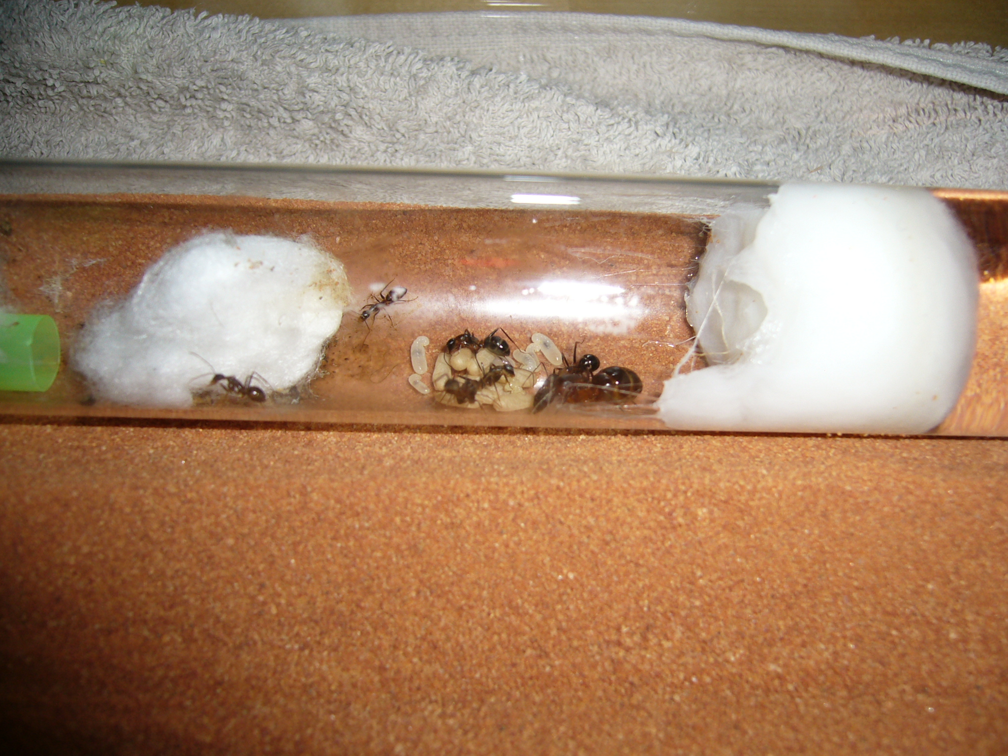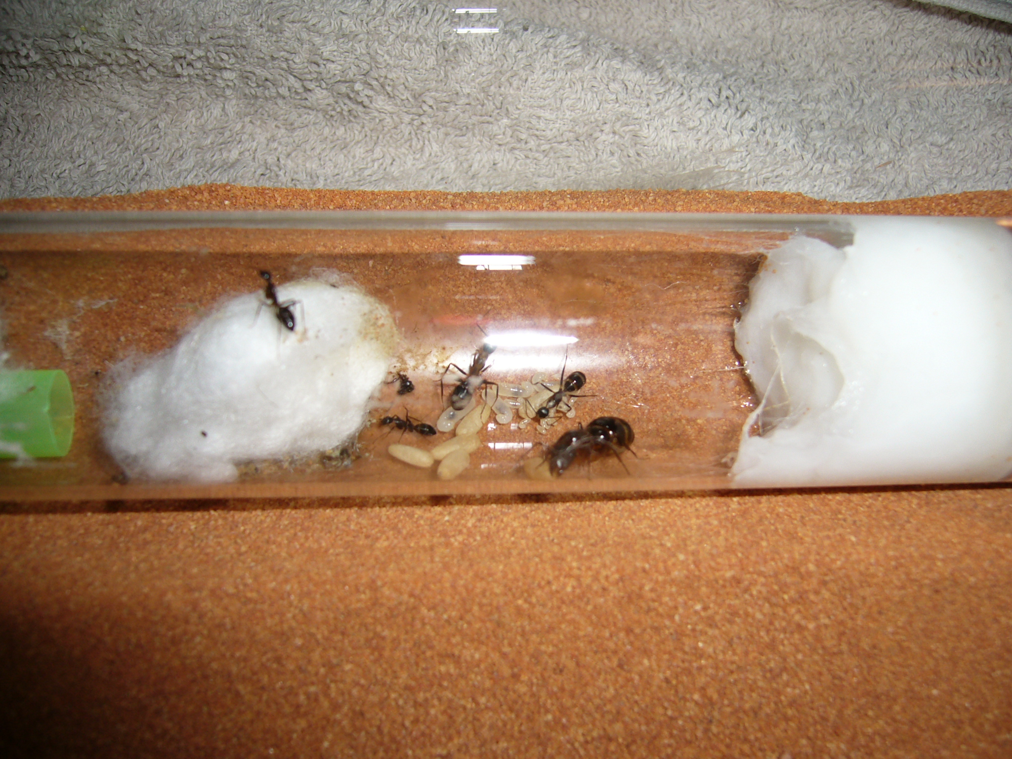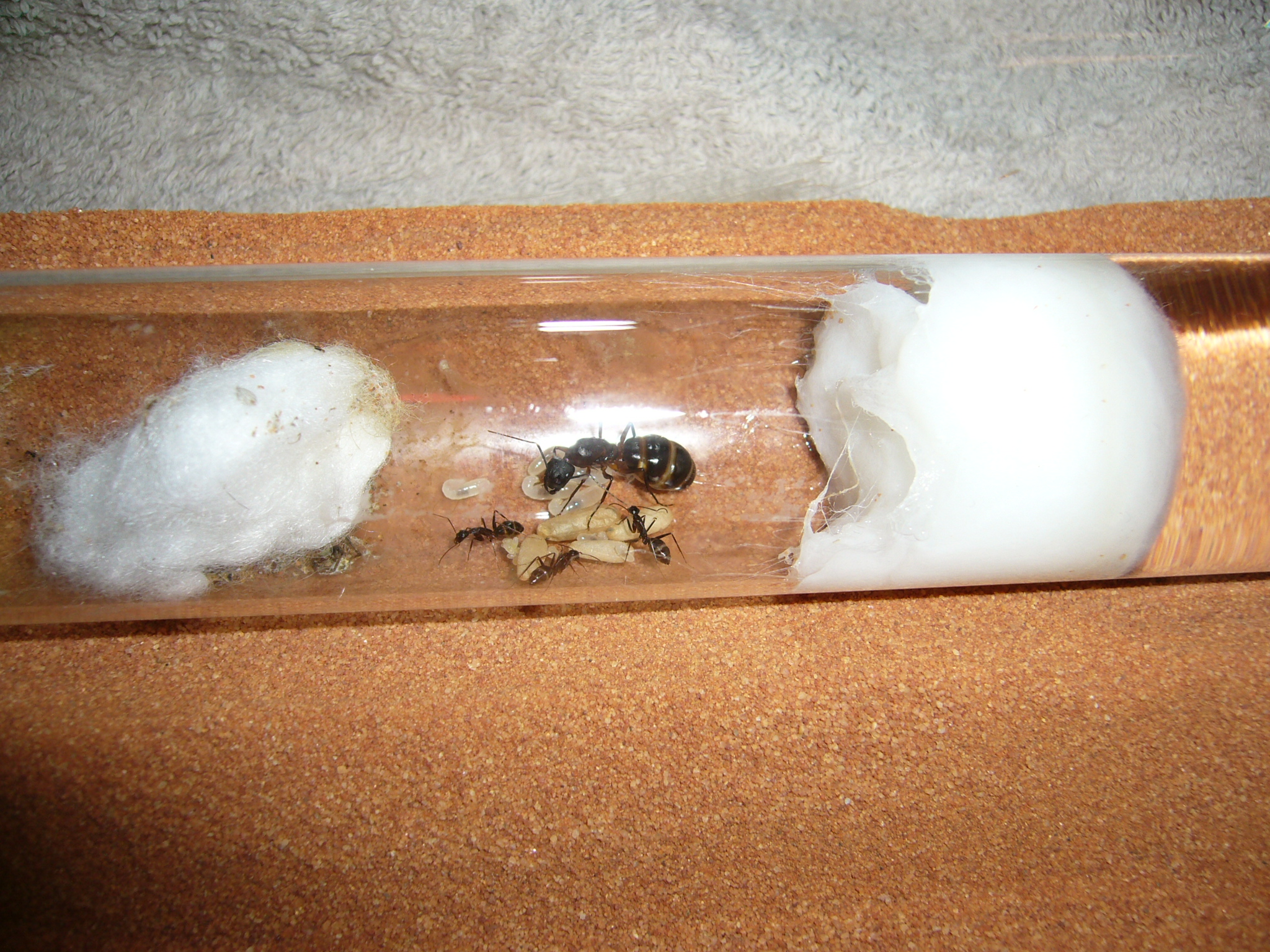 Hab das Nest bereits an die Anlange angeschlossen, erwarte aber nicht dass die bald umziehen. Im Moment bewegen die sich kaum mehr als ein paar Zentimeter als ihrem Nestglas (was vollkommen in Ordnung ist, sind ja noch eine kleine Familie).