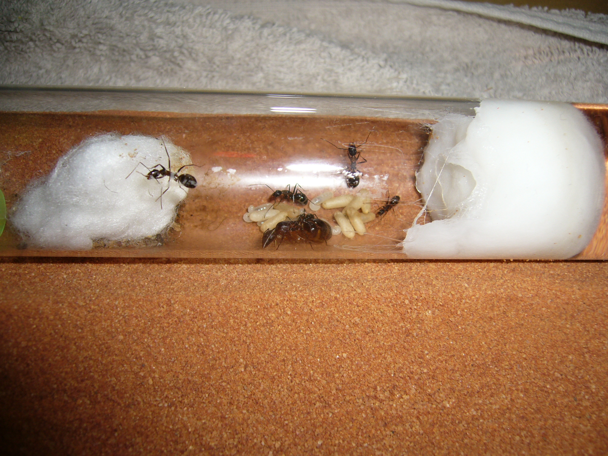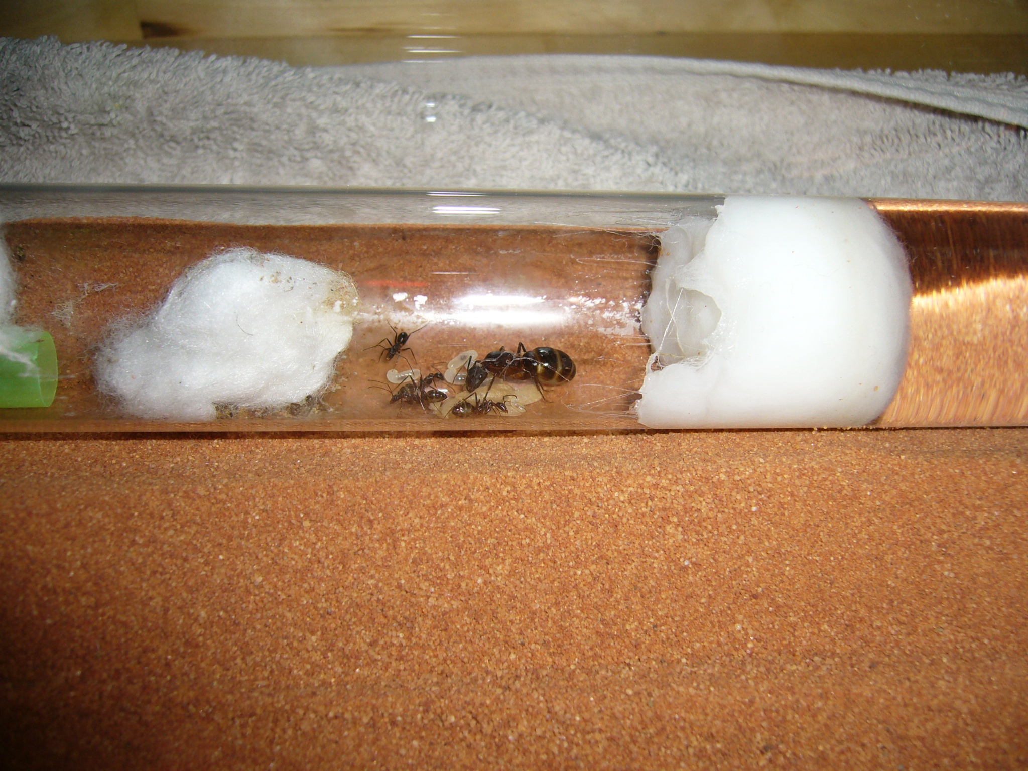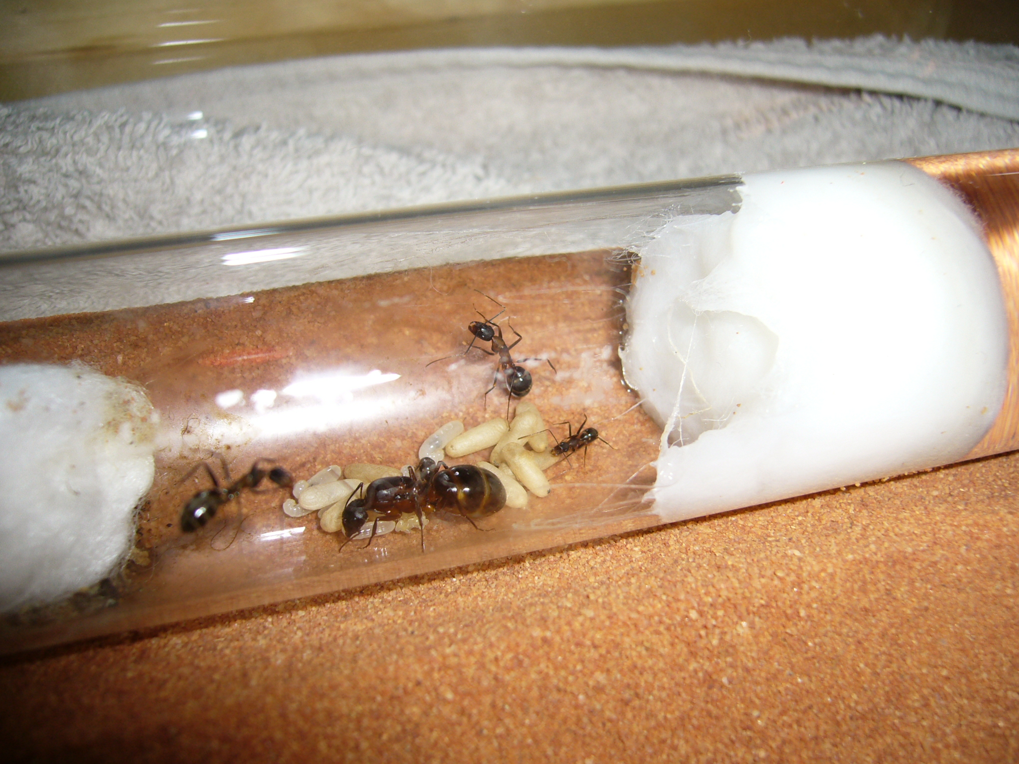 Hab das Nest bereits an die Anlange angeschlossen, erwarte aber nicht dass die bald umziehen. Im Moment bewegen die sich kaum mehr als ein paar Zentimeter als ihrem Nestglas (was vollkommen in Ordnung ist, sind ja noch eine kleine Familie).