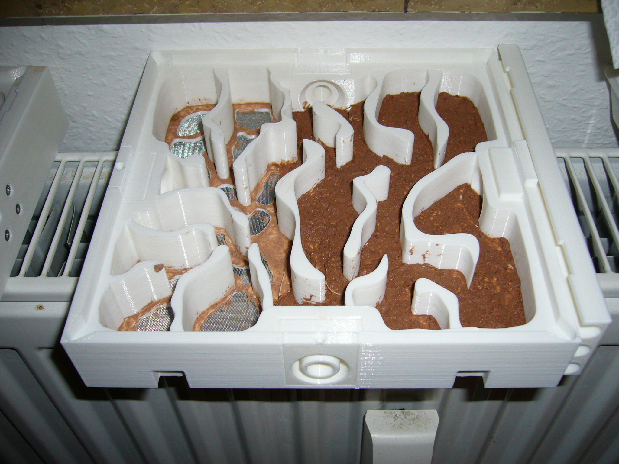 Hab eine Grundschicht Sand-Lehm aufgetragen, damit es den Ameisen leichter fällt drinnen zu laufen und ggf. das Nest zu bewässern.