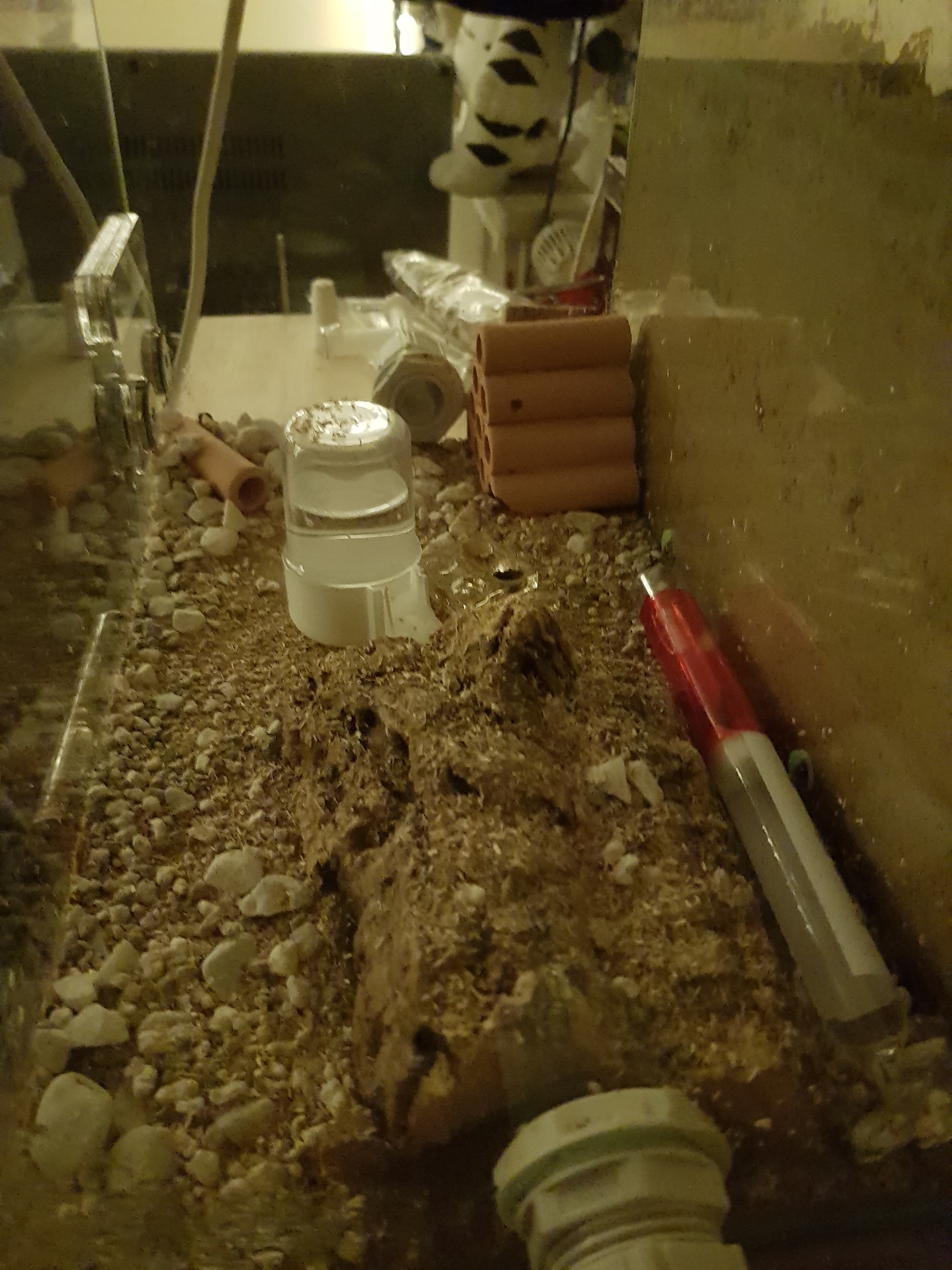 Stellte sich schnell heraus warum, die Kleinen haben sich kurzerhand in der linken unteren Röhre der Garnelen-Pyramide einquartiert.