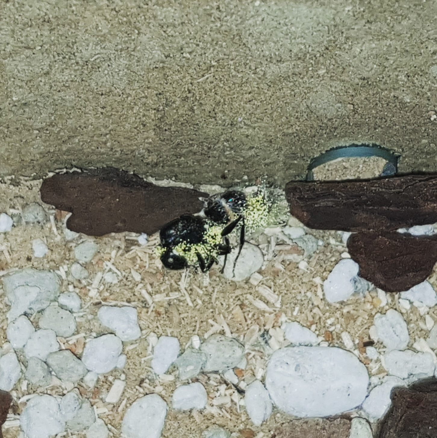 Am Montag oder Dienstag bemerkte ich dann dass eine größeres Interesse an einem der Eingänge ins Sandnest zeigt (dort habe ich ihnen mit einem kleinen Inbussschlüssel ein "Startloch" vorgestochen).