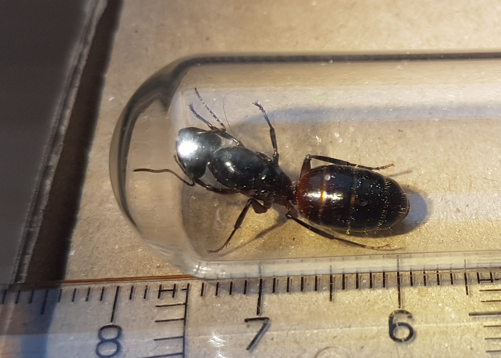Daran zu erkennen, dass die Gyne zum einen bulliger gebaut ist als die sehr ähnliche Camponotus herculeanus und dass das erste Tergit (erste Chitinplatte am Gaster) rötlich gefärbt ist.