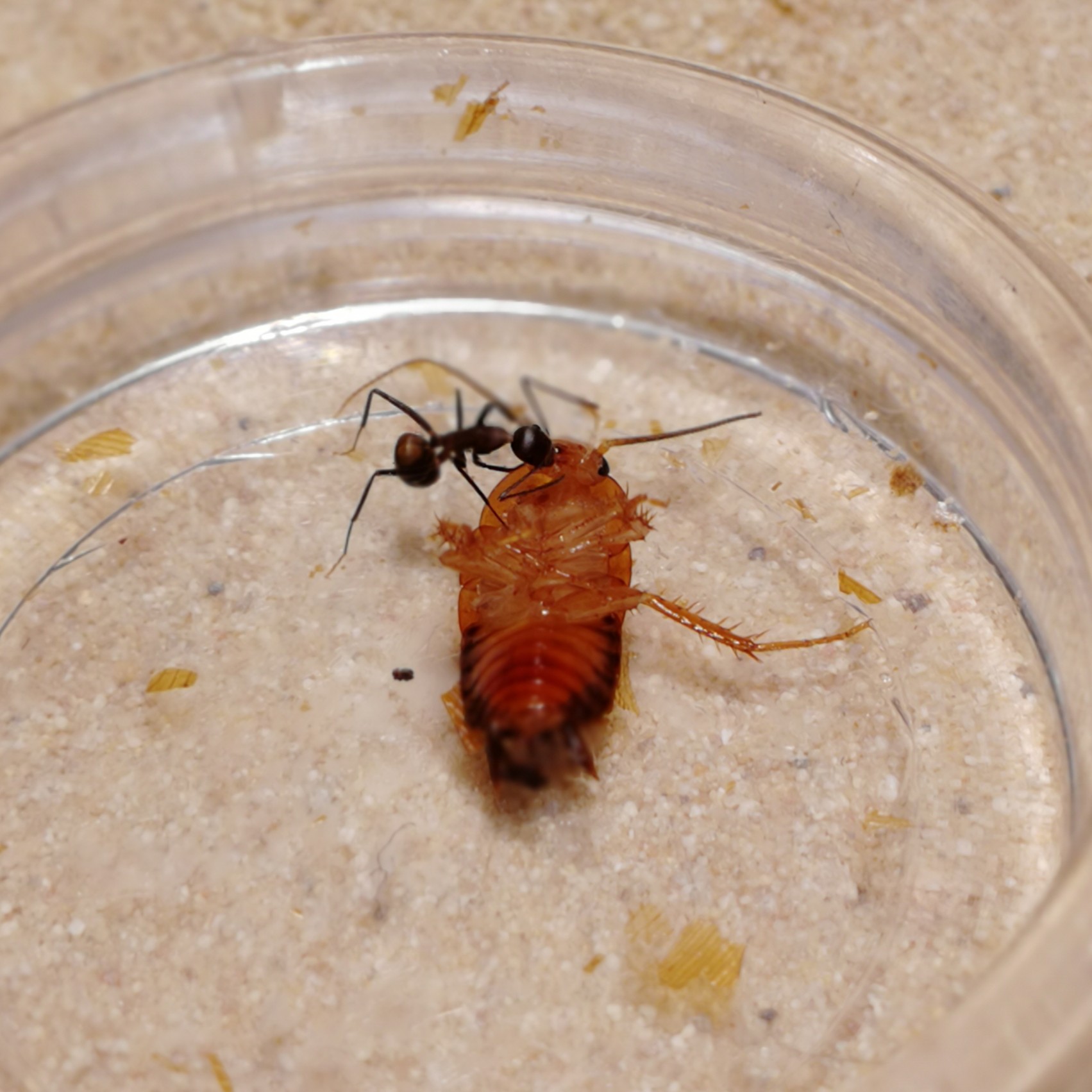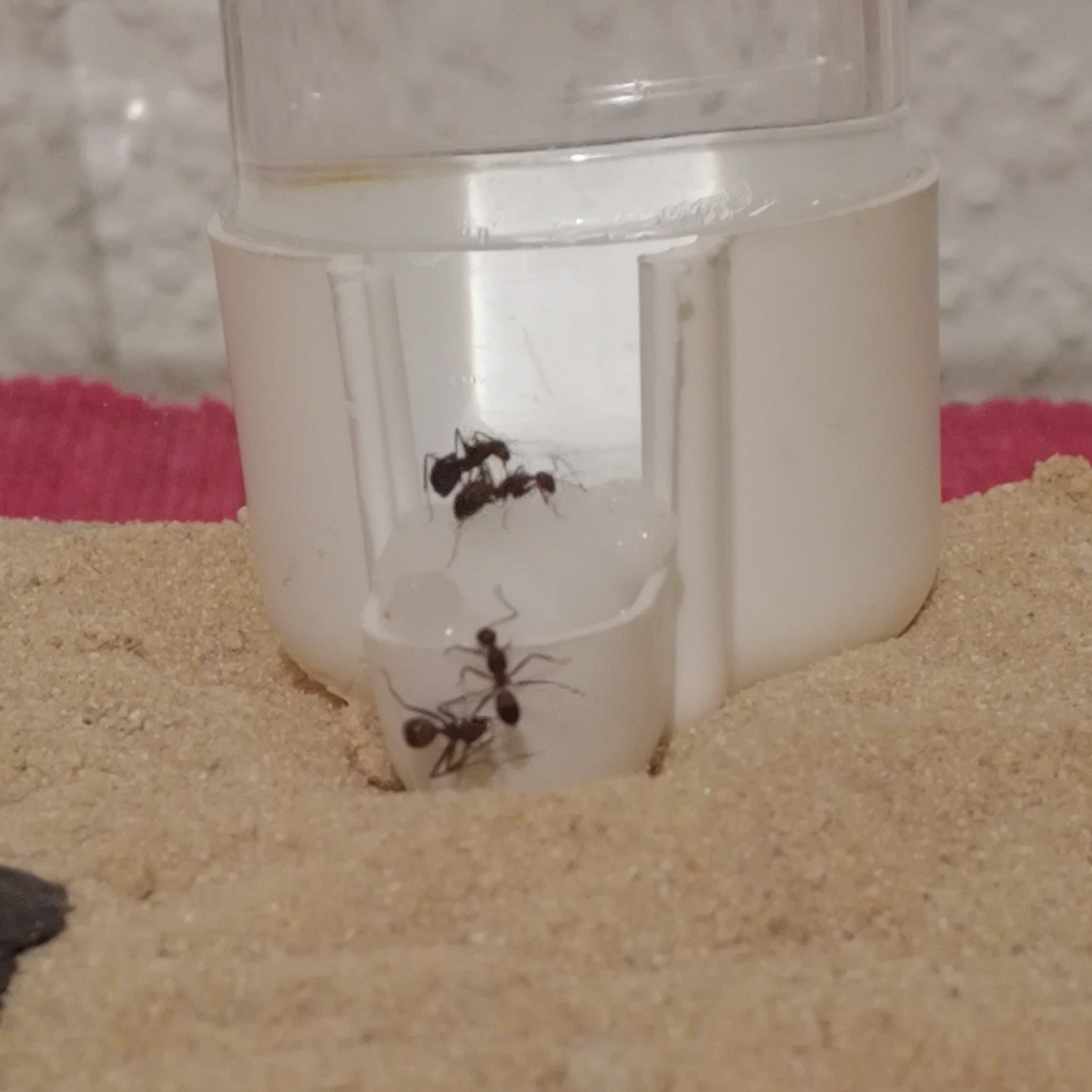 Nach 3-4 Tagen sind sie dann aus dem RG in den Schlauch gezogen. In diesen Tagen haben sie vor allem spät Abends (sind ja besonders bei Gründerkolonien noch sehr nacht/dämmerungsaktiv) fouragiert. Weitere 5 Tage später sind sie tatsächlich in ihr 3D Nest gezogen. Sie wurden mit der Zeit etwas inaktiver, dass lag aber daran, dass sie keinen Grund mehr hatten raus zu gehen, sie hatten ja alle prall gefüllte