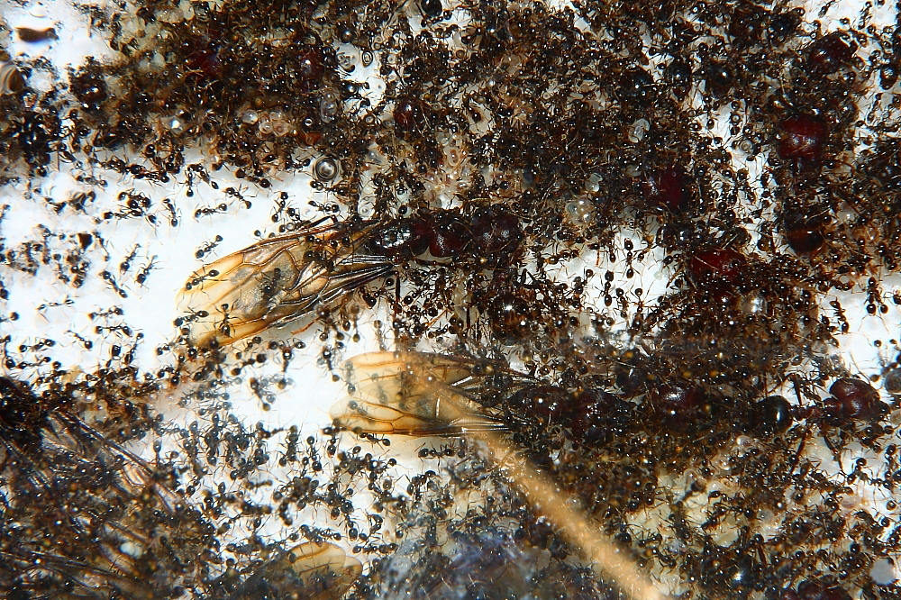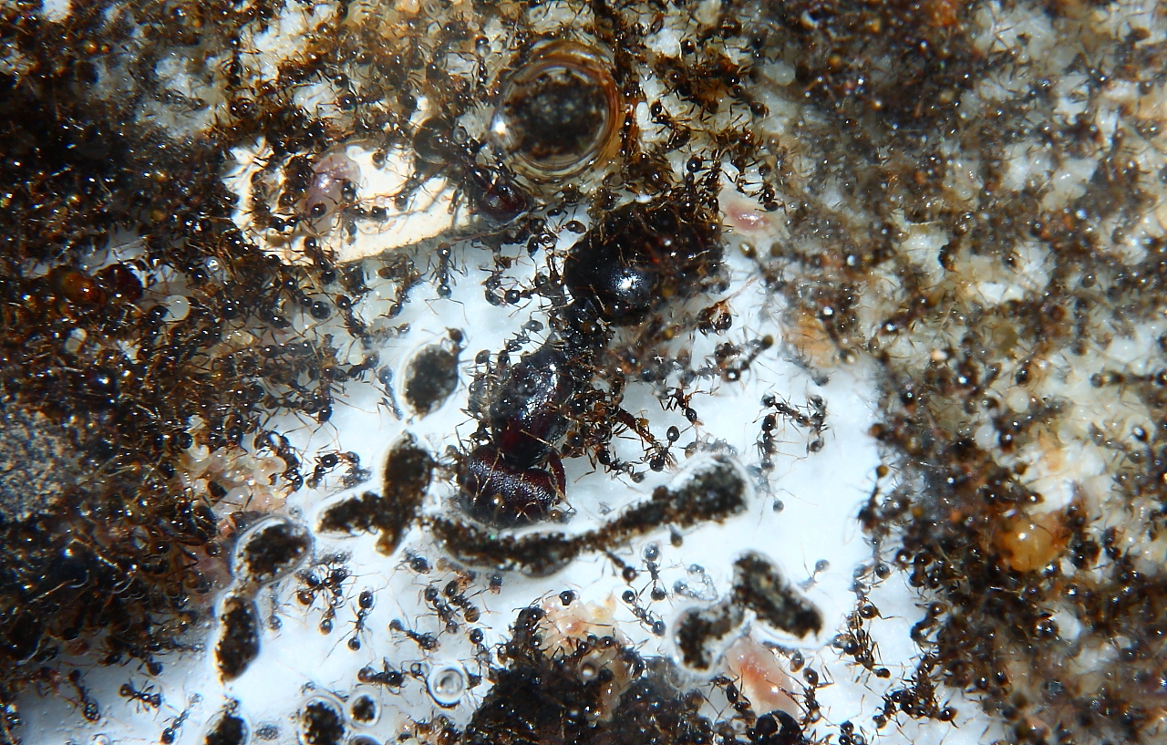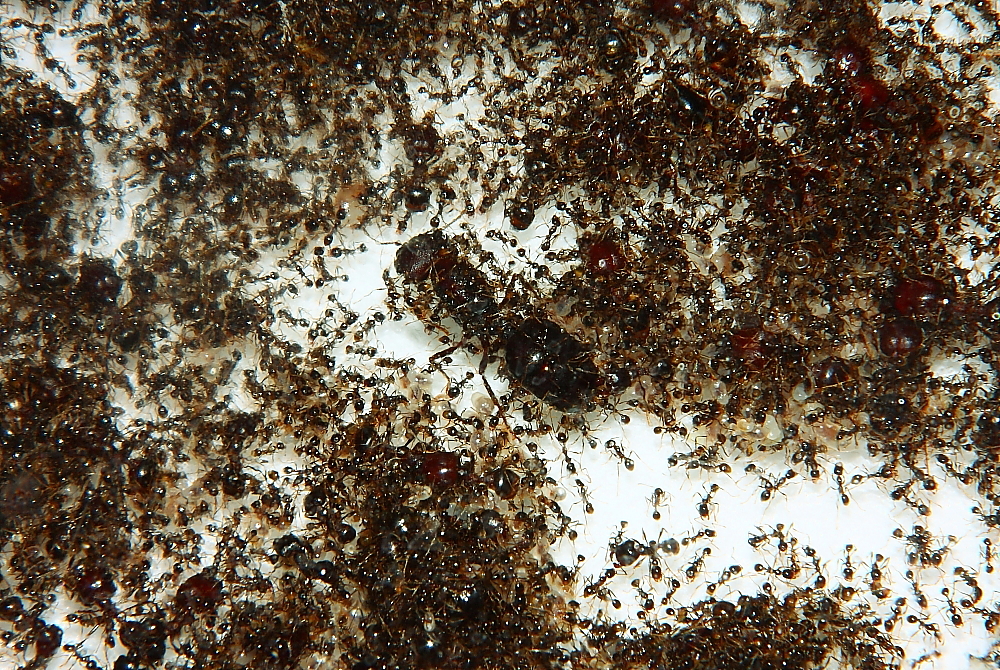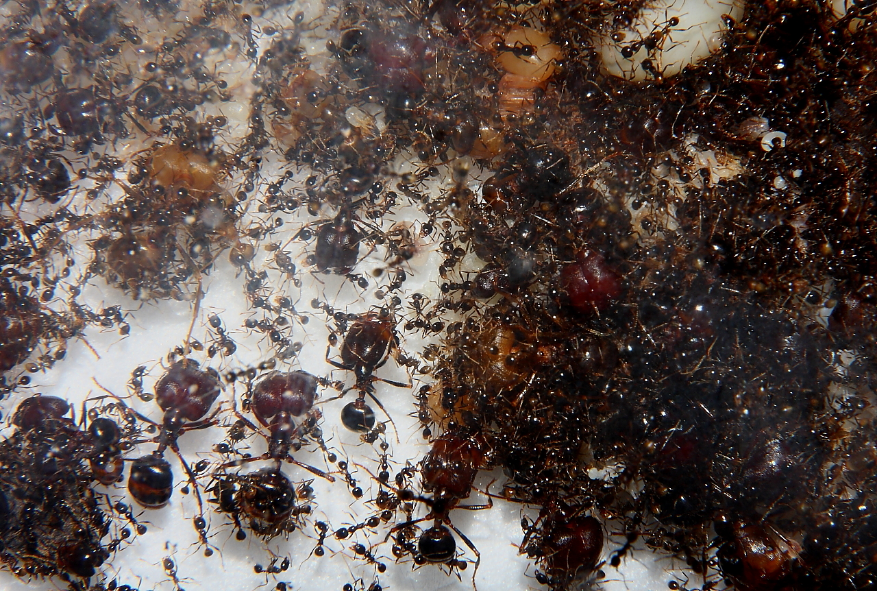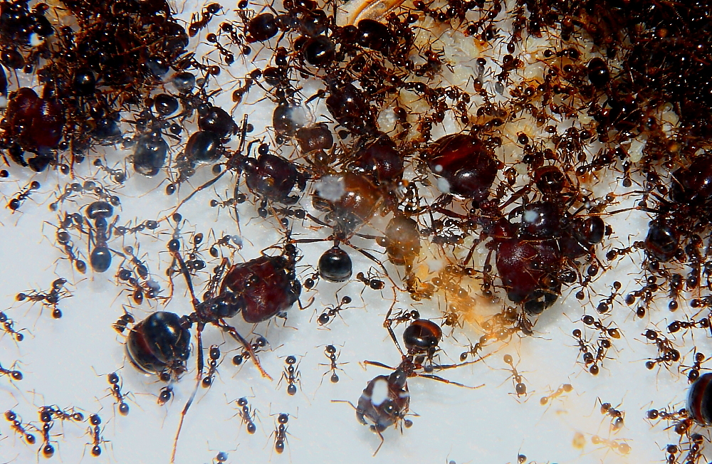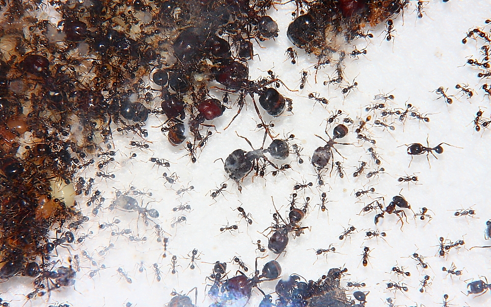 Dürfte wirklich ein besonderes Erlebnis mit der Ameisenhaltung abgeben, ein Carebara diversa -Volk beim Ausbruch zu beobachten.