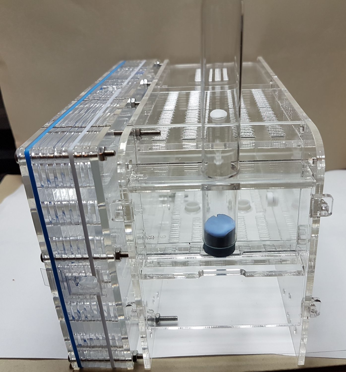 Im Nest ist noch ein Schwamm verbaut fĂĽr die Feuchtigkeit, diesen kann man von auĂźen mit Pipette oder Spritze befeuchten!