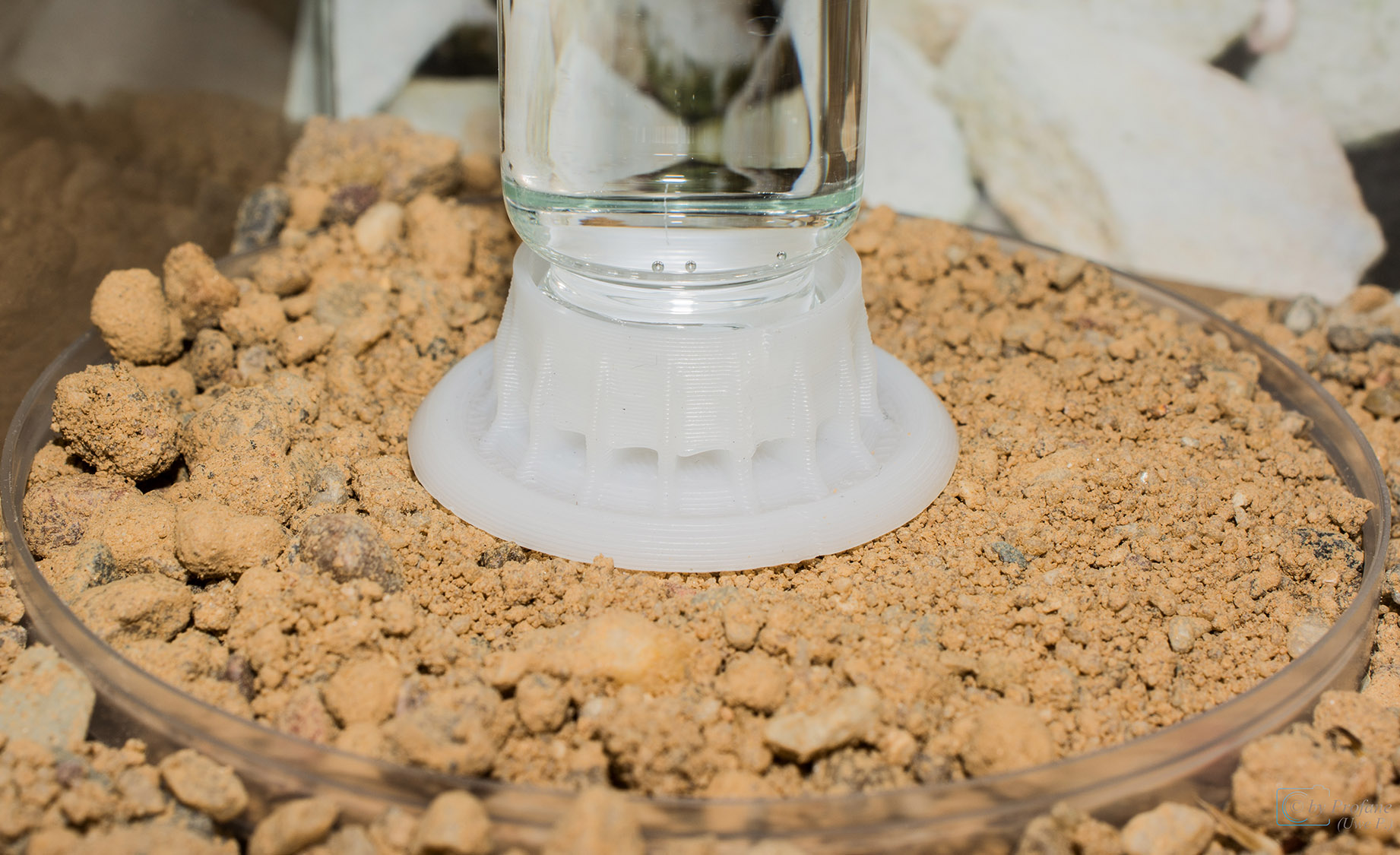 Inzwischen sind wir bei sechs Arbeiterinnen. Mir ist aufgefallen dass das kleine Gitter in der TrĂ€nke anfĂ€ngt zu rosten. Ich habe deswegen die TrĂ€nke erst mal gegen einen kleinen Napf ausgetauscht. Halbvoll mit Wasser und dann mit Watte gefĂŒllt. Damit die kleinen nicht ertrinken.