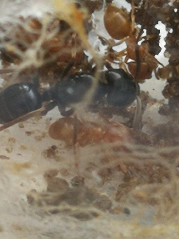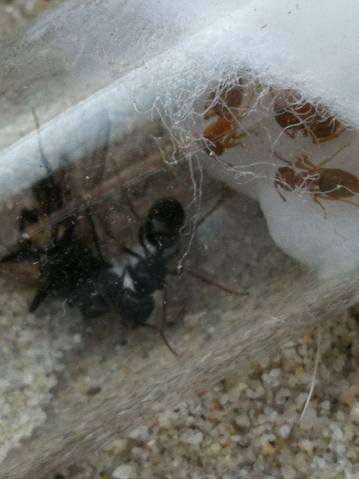 2 Gynen der Lasius fuliginosus wurden gefangen und in die kleine Arena gegeben. Eine (