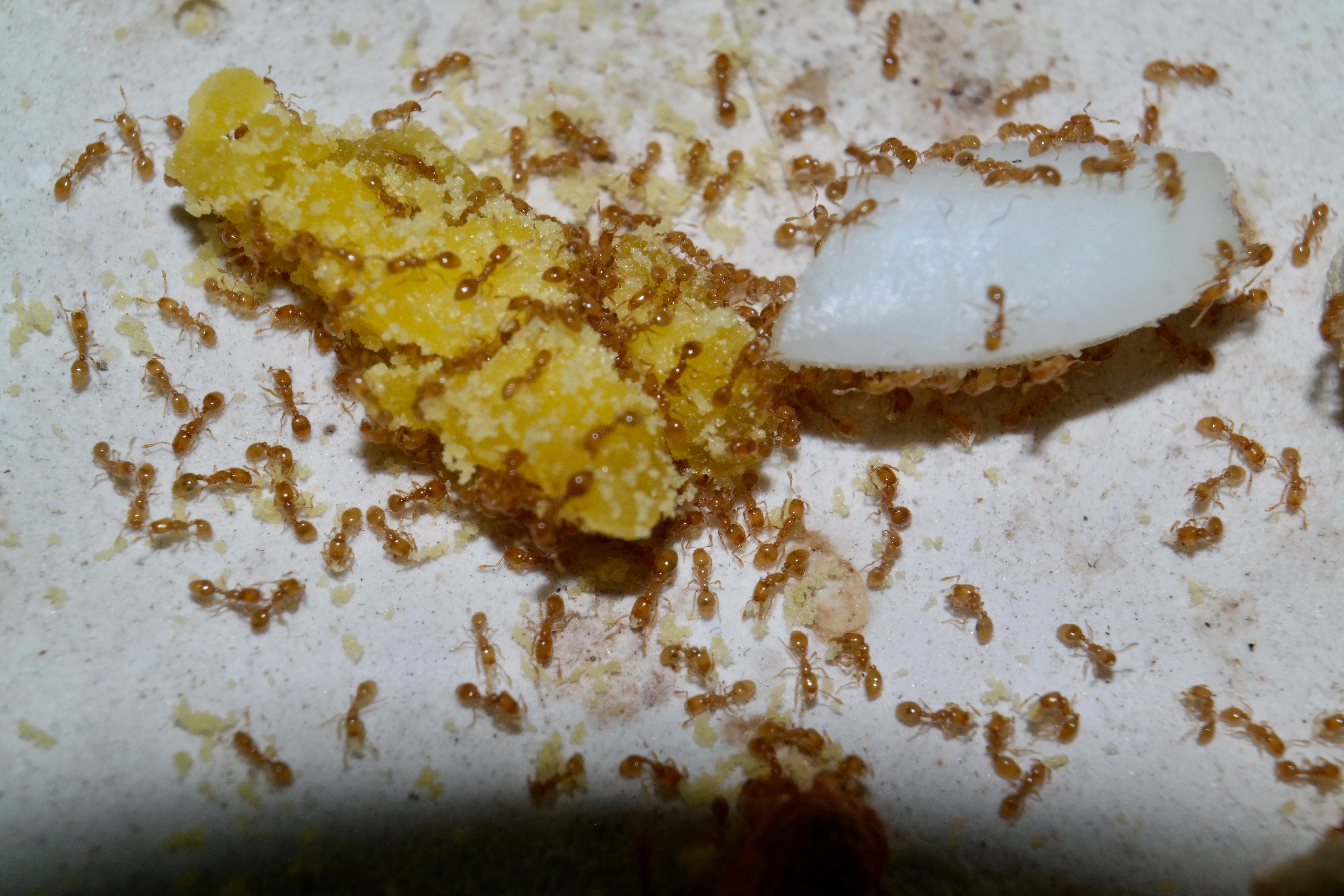 Hartgekochtes (Hühner-)Ei an Solenopsis fugax zu verfüttern scheint reine Lebensmittelverschwendung zu sein, obwohl Brut (darunter auch Eier) doch eigentlich zu deren natürlicher Nahrung gehört :spin2: