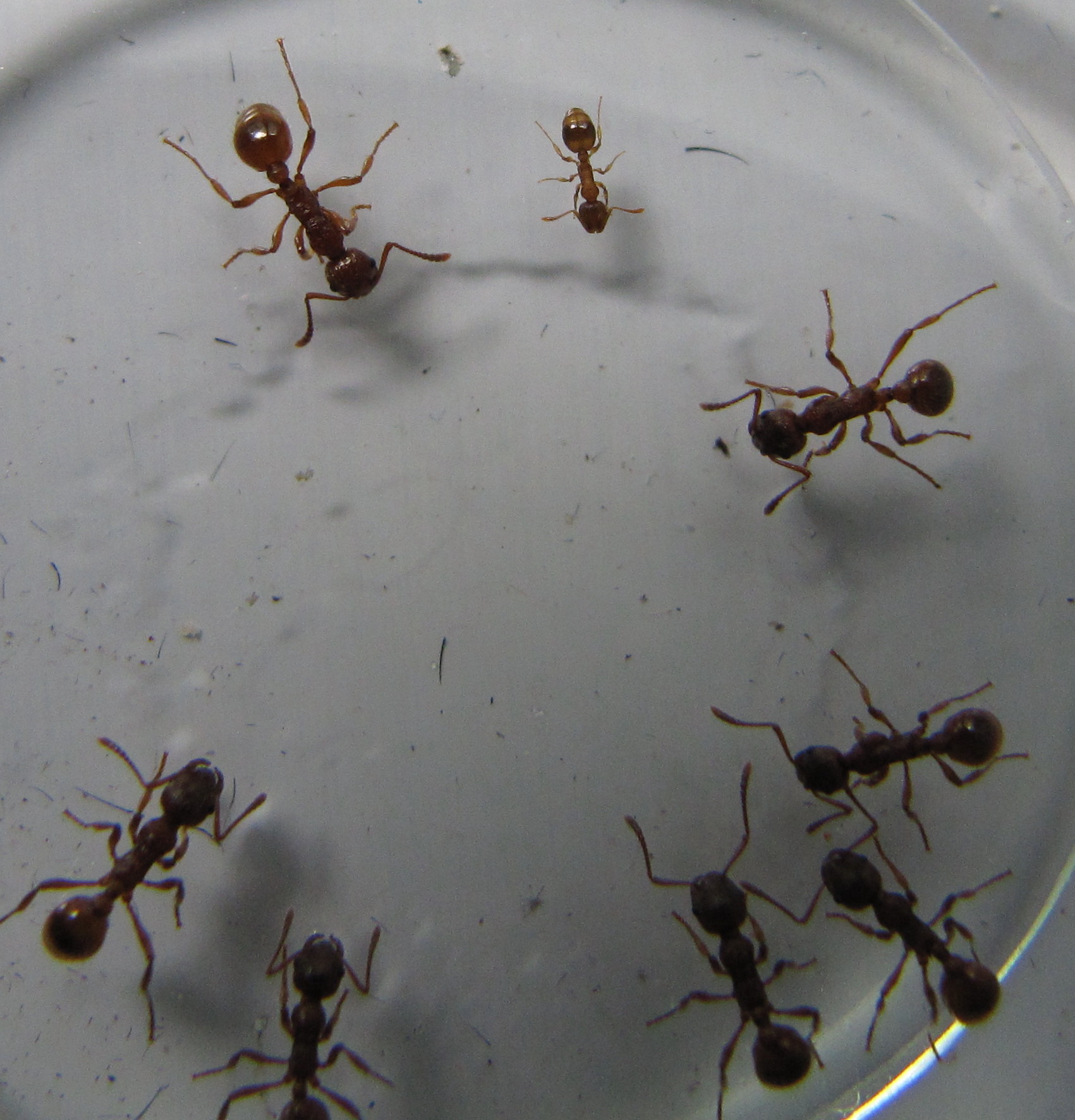 a. Die Kleinen (Temnothorax cf. nylanderi) treffen auf die Großen (Myrmica cf. rubra):