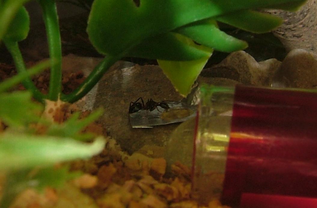 Das neue Honigwasser habe ich nun mal auf das Hybridnest gelegt, ich hoffe sie finden es dort, sollte aber schon der Fall sein, da es nicht wirklich weit weg von "heimischen Gefilden" ist, sprich im Grunde nur etwa 3cm weiter nach oben. Mal sehen, zum Glück entgeht einem ja bei dieser Gattung/Art nicht, wenn sie einen Honigwassertropfen besucht haben, sofern er nicht zu groß ist, da sie doch deutlich mehr aufnehmen, als z.B. meine Lasius niger.