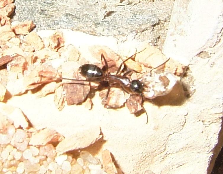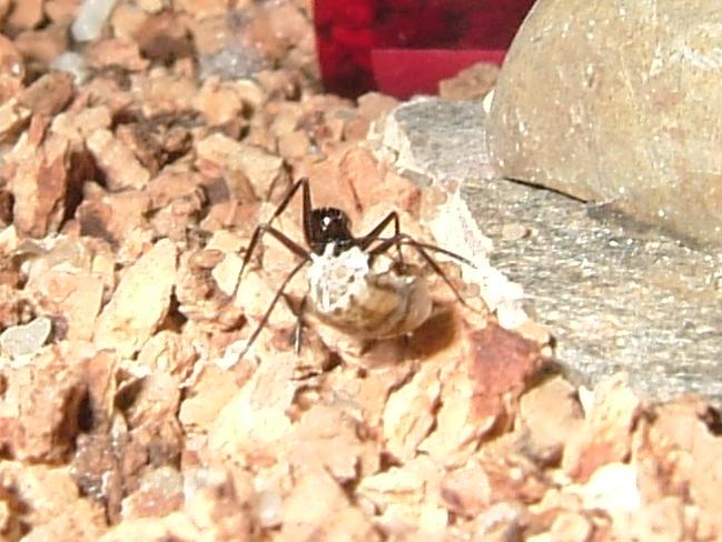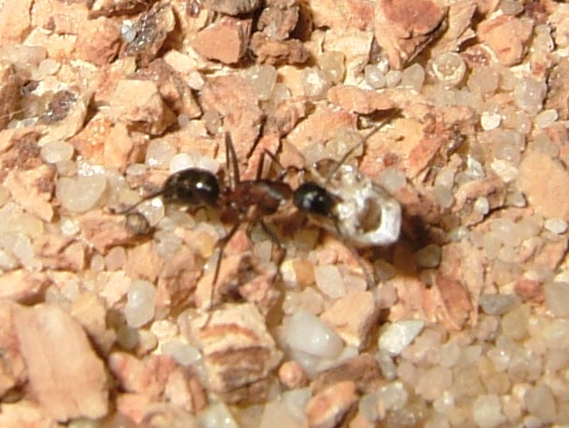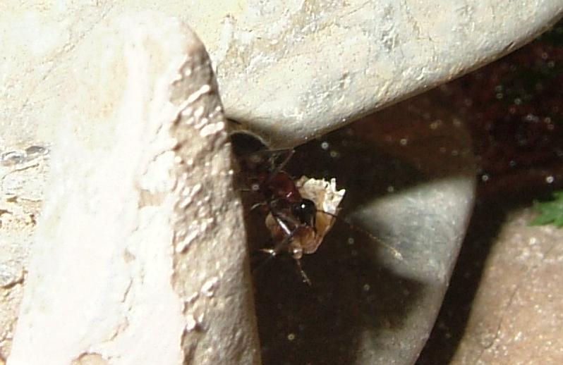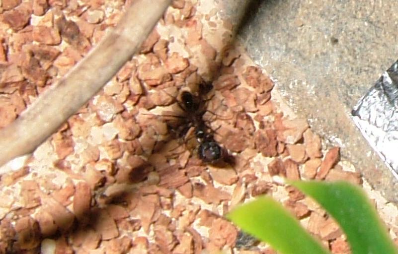 Ich bin echt heil froh, daß ich vorhin in mein Zimmer bin, um nach den Ameisen zu schauen, den so hatte ich glatt eine Arbeiterin dabei "erwischt", wie sie gerade in Begriff war, den Müll zu entsorgen.