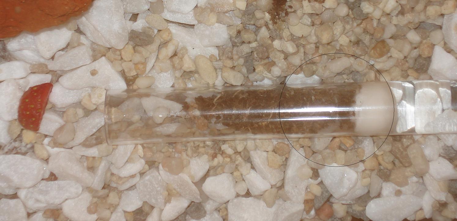 Bisher hat sich nicht mehr viel getan. Nach den Bauarbeiten im RG hat die AktivitĂ€t hier sehr nachgelassen. Hier und da lĂ€uft mal eine vereinzelte Ameise durch die Weltgeschichte, aber sonst alles ruhig. Die ĂŒbriggelassene Kellerassel habe ich nun nach zwei Tagen entsorgt. Der Aufschnittstelle hat sich bereits schwarz gefĂ€rbt und war mir nicht mehr geheuer.