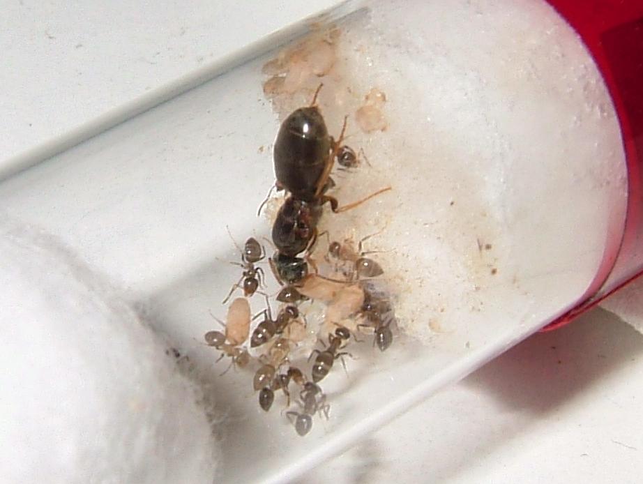 Da es eben unklar ist und ohne entsprechendes Wissen und Ausrüstung eine Sichere Bestimmung nicht möglich ist, werde ich sie nun in einem RG gründen lassen und mal abwarten, wie die Pygmäen/Arbeiterinnen aussehen und zu gegebener Zeit und Menge dann ggf. (L. flavus wäre ja recht einfach bei den Arbeiterinnen zu bestimmen, entsprechend der Färbung) zwei bis drei an eine entpr. Organisation bzw. Fachmann schicken zur Bestimmung, sofern es nicht zu kostenintensiv ist