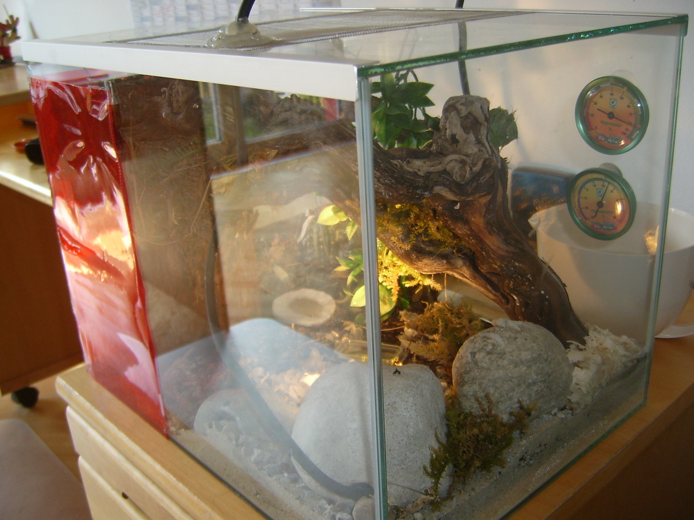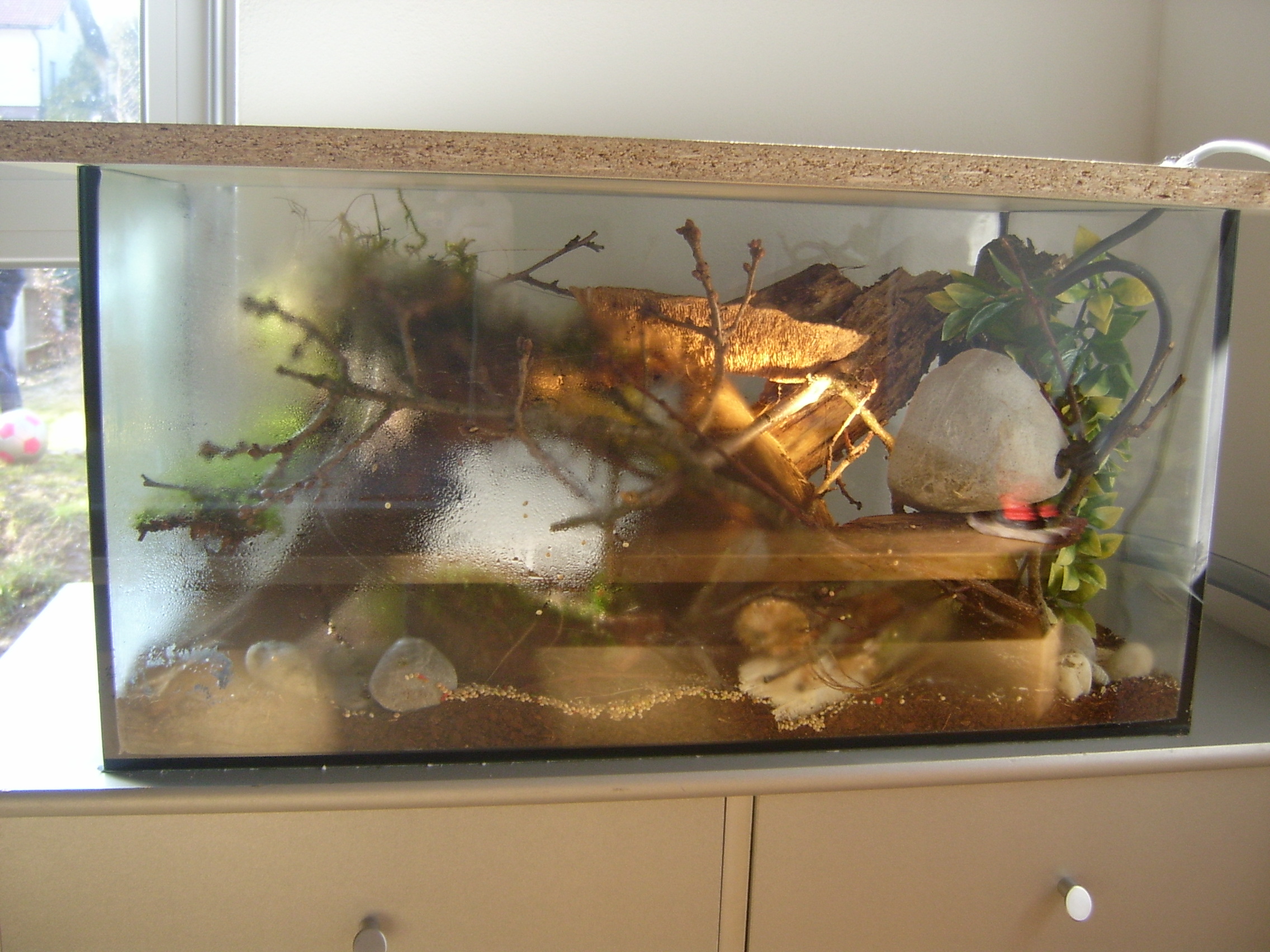Wie gesagt habe ich das Nestbecken mit den MaĂen 40*30*30 an ein weiteres Becken mit den MaĂen 60*30*30 verbunden. Dazu dient ein 250 cm langer Schlauch, der heute erstmals erkundet wurde. Die Löcher ins becken habe ich mit einem 1 cm Glasbohrer, ohne Probleme, gebohrt. Allerdings war er nach der Arbeit zum wegschmeiĂen.