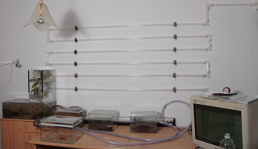 Fotos von Formicarien und anderen Behausungen fĂŒr Ameisen.